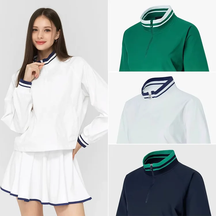 Custom Front Logo Summer Anti-UV Tennis Half Zipper Jacket High Waist 2 in 1 Skirt with Pocket Padel Pickleball Wear