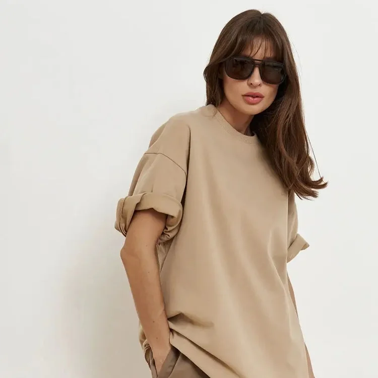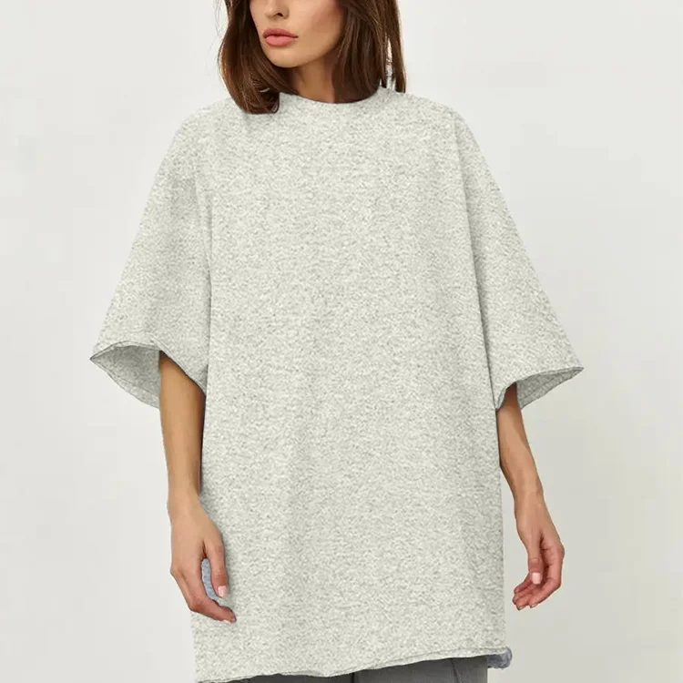 Women's Custom Design Formal Oversized Drop Shoulder T-Shirts with 3D Embroidery Acid Wash & Sequined Details