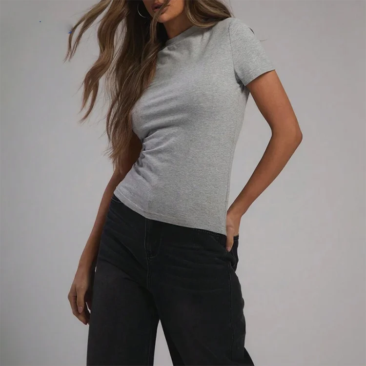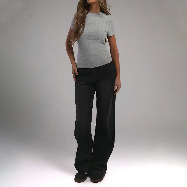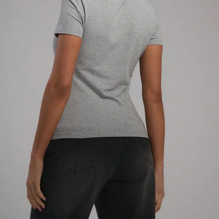 Custom Logo Acid Wash Badge Sequined Round Neck Crop Top Rhinestones Plain Blank Short Sleeve Women T-Shirt