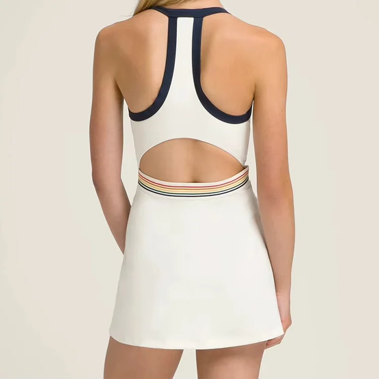 Custom Print Sport Pattern Halter Quick-drying Collarless Pleated Custom Print Tennis Dress