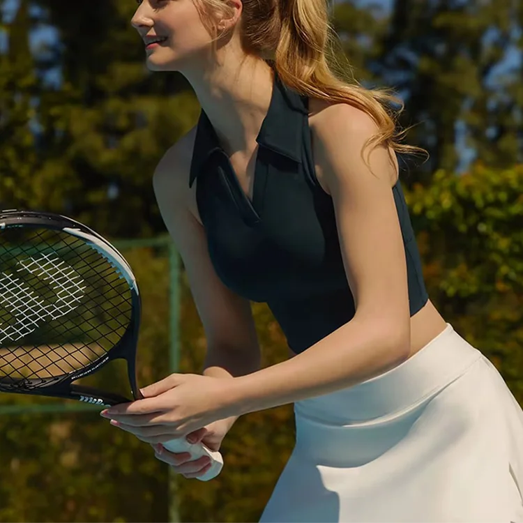 Style High Elasticity Two-Piece Tennis Suit Quick-Drying Fitness Wear Breathable Tank Top Chest Pad Skirt Set for Woman