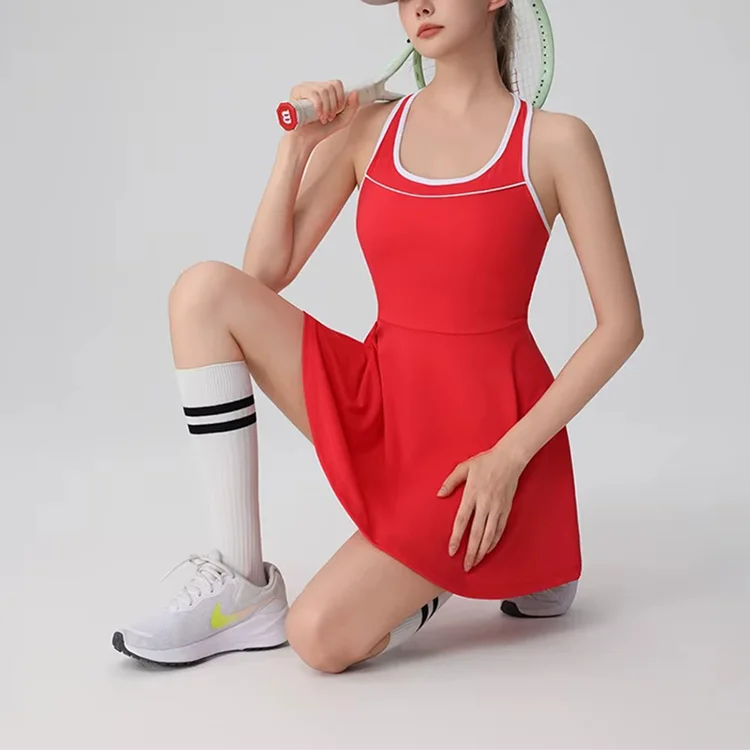 Summer new casual slim-fit sports patchwork dress and shorts set for women, breathable tennis dress and shorts set