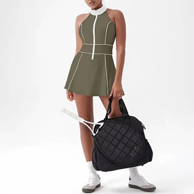 Women's Zipper Collar Straight Fitting Breathable Tennis Polo Golf Dress Contrast Color Sleeveless Tennis Wear