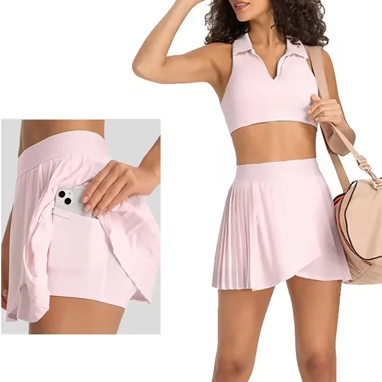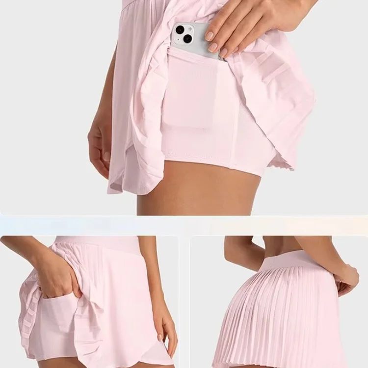 New Tennis Sports Wear Mini Skirt Sexy Pleated Two in One With Shorts Workout Outdoor Sportswear Tennis Clothing