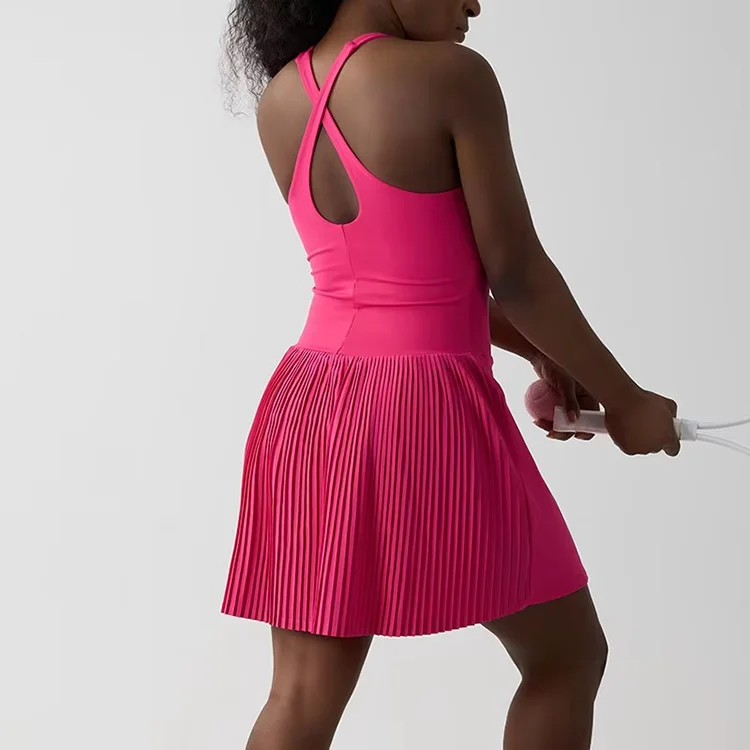 Pleated Women Tennis Dress Sleeveless with Built in Shorts and Bra Summer Athletic Dress with Pockets for Women