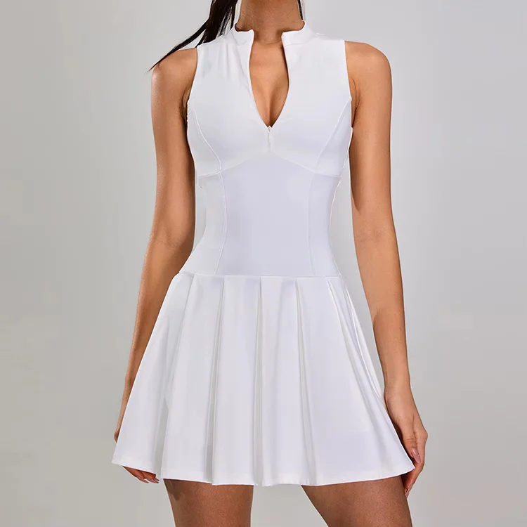 Waist-cinching Tight-fitting Sports Dress, Women's Zipper Tennis Suit, Outdoor Running and Fitness Tennis Skirt
