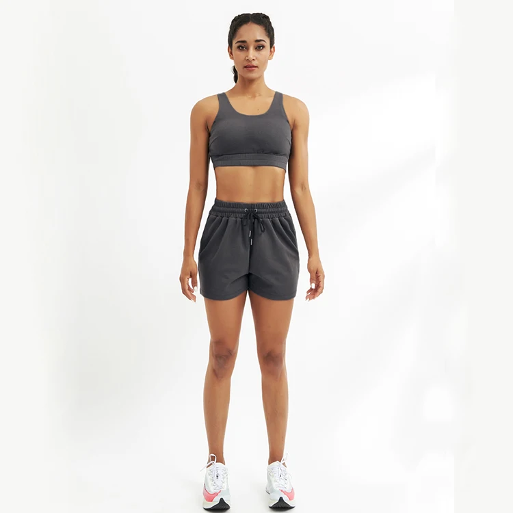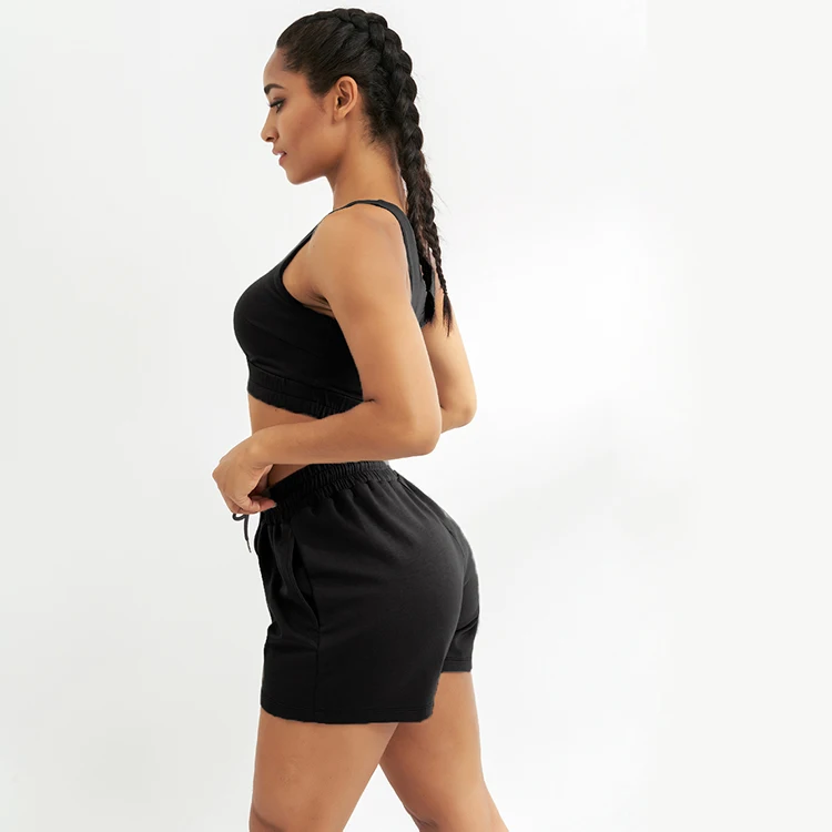 Two Piece Plus Size Short Hot Gym Clothes Set With Bra Women High Waist Stripped