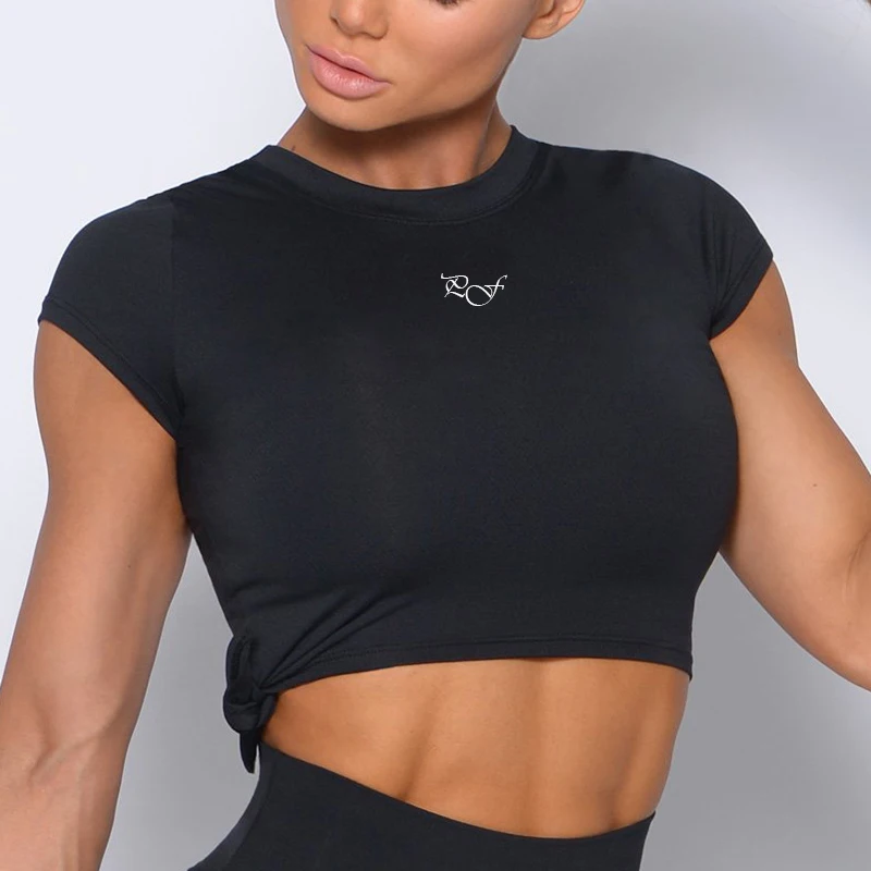 Private Logo Printing Custom Organic Bamboo Polyester Cross Waist Mock Neck Yoga Crop Top