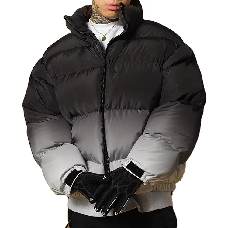 Men's Winter Outdoor Jackets Gradient Warm Vintage Stylish Zip Padded Down Puffer Jacket Streetwear Custom