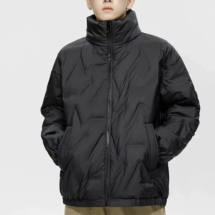 Men's Casual Winter Jacket Windproof Thickened Down Outdoor Puffer with Zipper Closure Custom Oversized Puff Printing