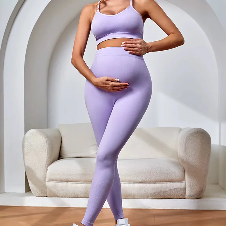 Women's Maternity 2 Piece Outfit Scoop Neck Crop Tank Top Legging Activewear Running Active Yoga Pregnancy Pants Set
