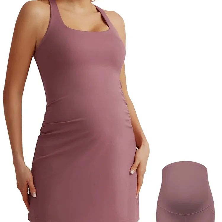 Maternity Clothing Sleeveless Pregnant Dress with Built-in Bra Shorts Gym Wear Yoga Set Breathable Eco-Friendly Summer US Size