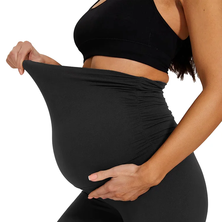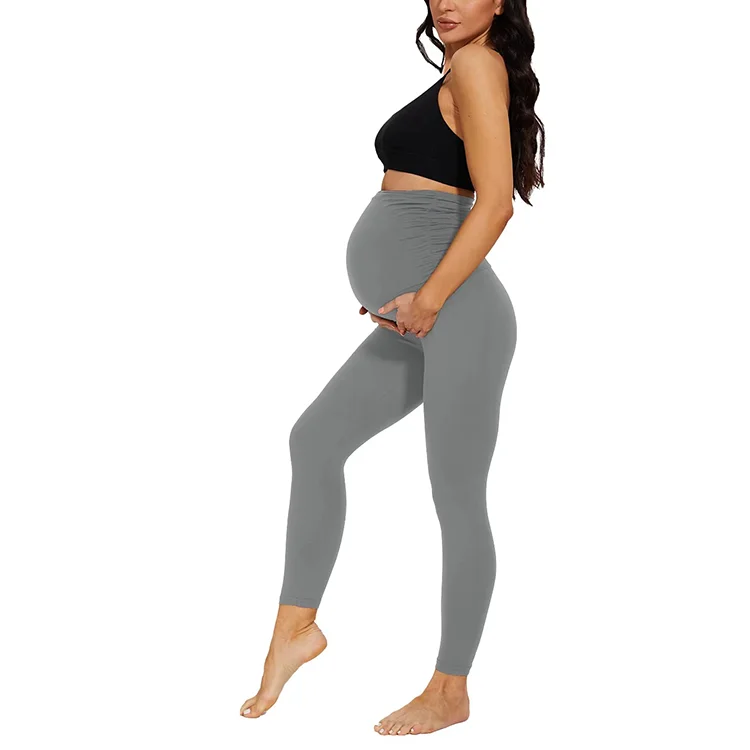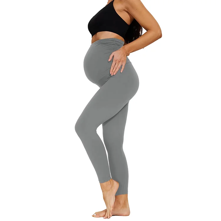 Custom Logo Women Maternity Pants High Waist Slim Fitness Pregnancy Belly Legging No Pockets Style Solid Elastic Breathable