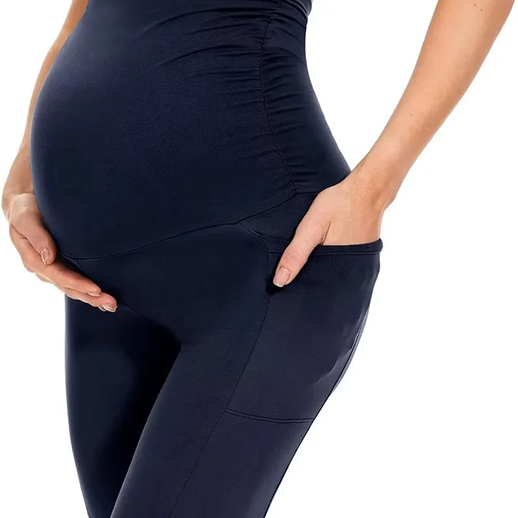 Wholesale Custom Color Size Breathable Eco-Friendly Summer Maternity Yoga Gym Wear Pocket Solid Color Soft Maternity Wear for