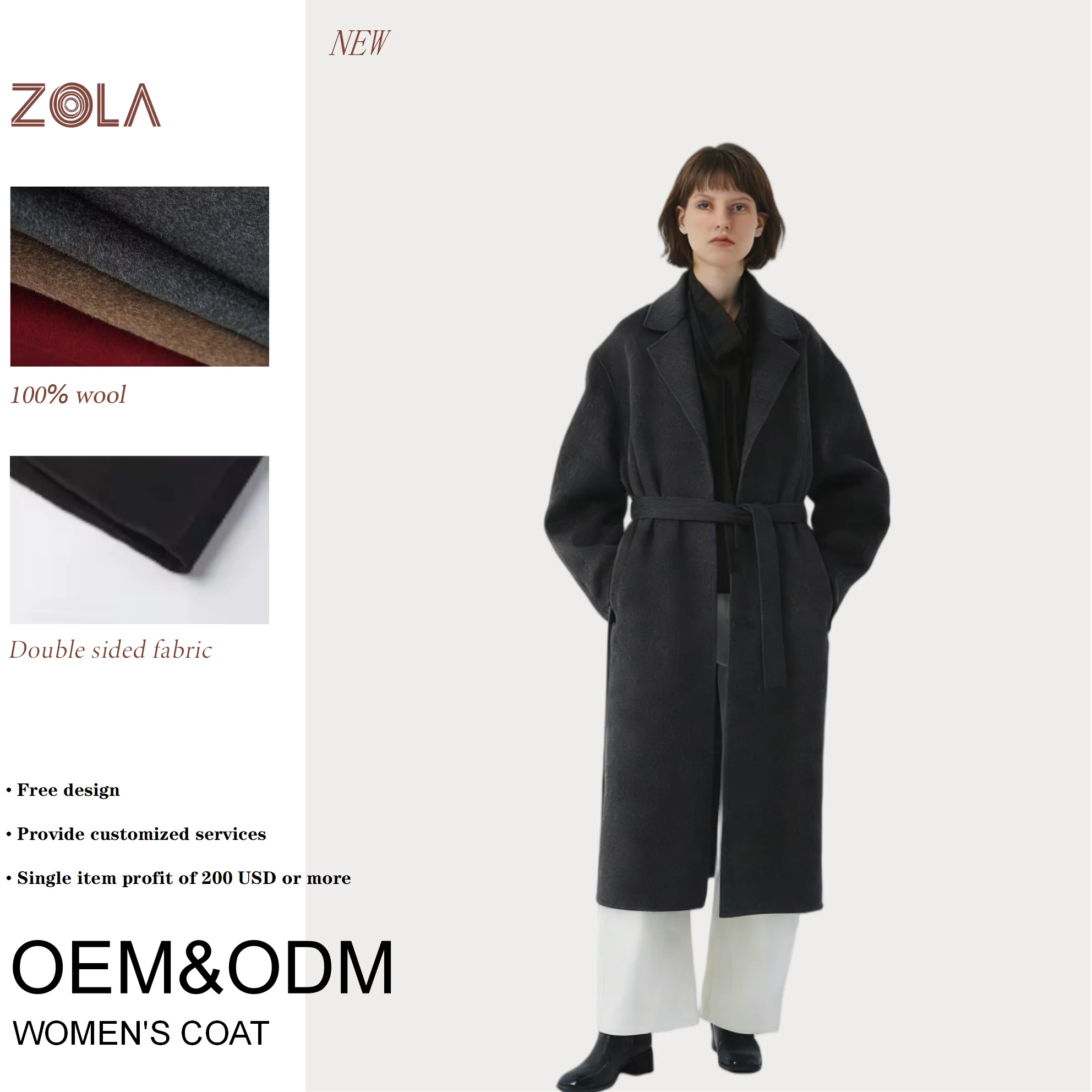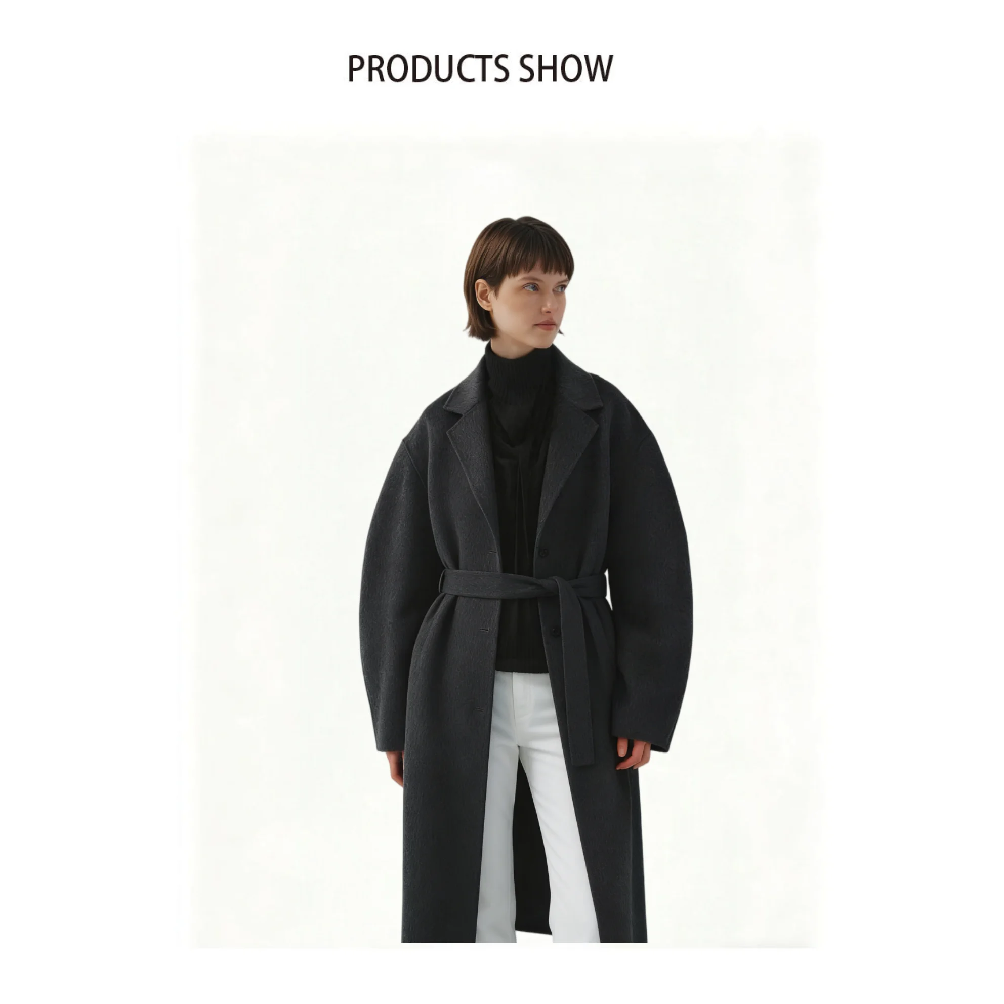 Luxe Winter Silky-Soft Oversize Belted Coat 100% Wool Double Sided Eco-Friendly Office-Ready Daily-Errand Custom OEM&ODM
