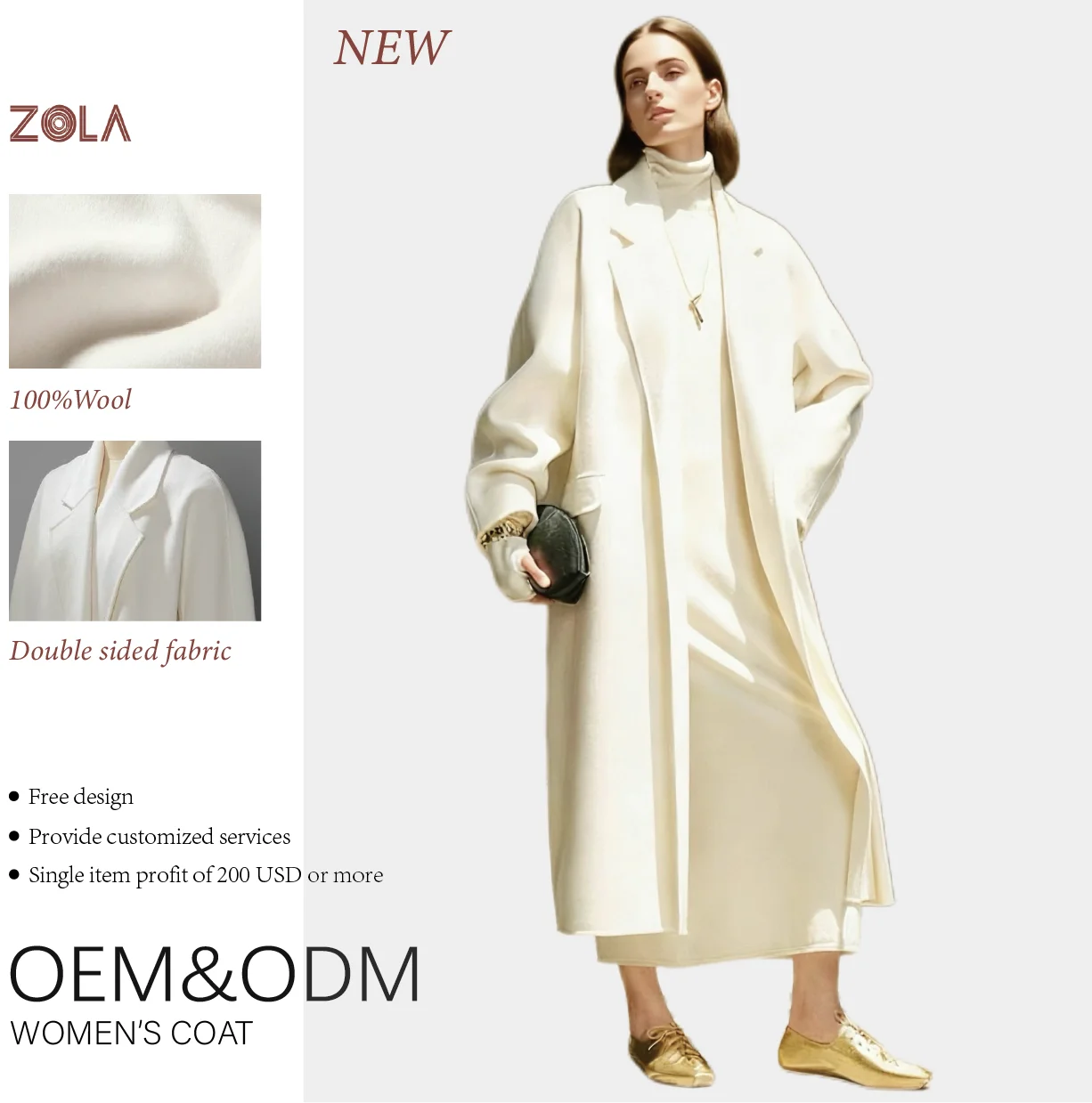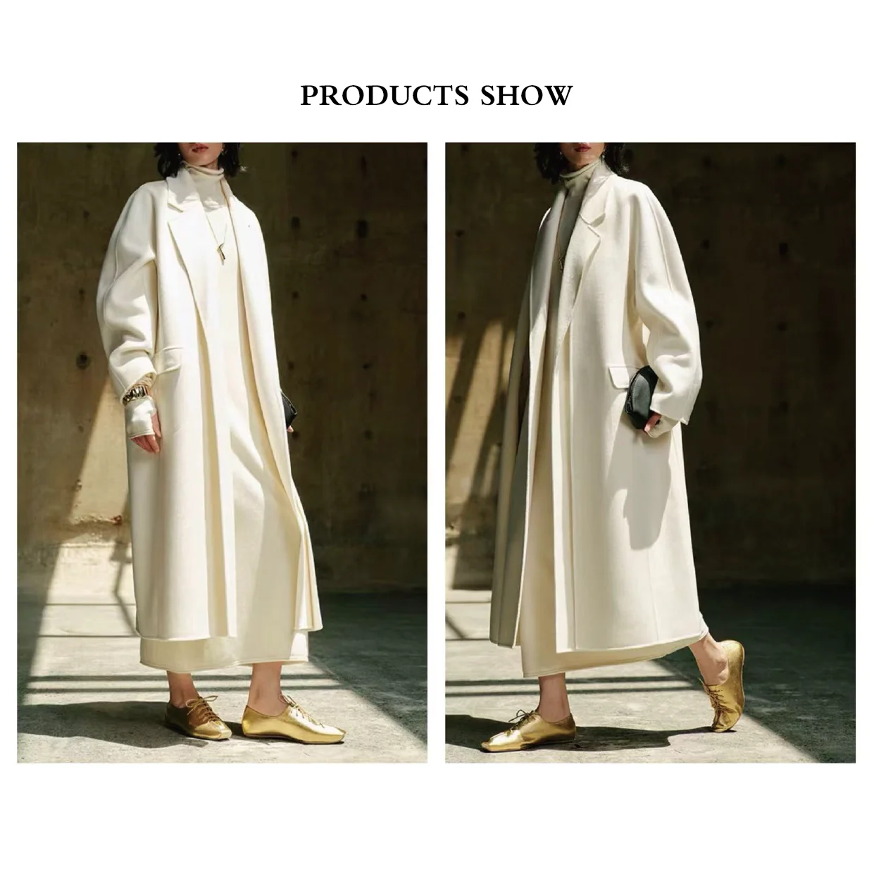 Handmade Elegant Double-Sided Long 100%Wool Woolen Coat Office Lady Eco-Friendly Breathable Winter Casual Outerwear Open Front