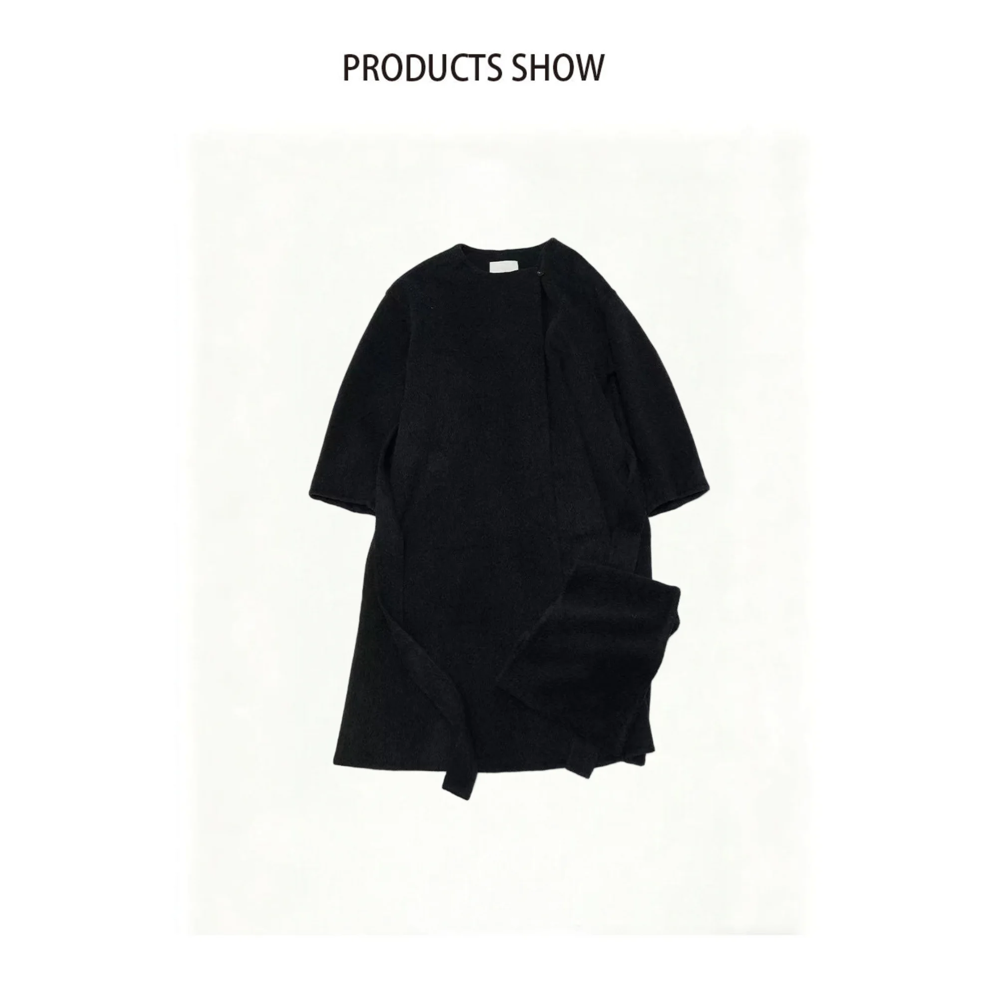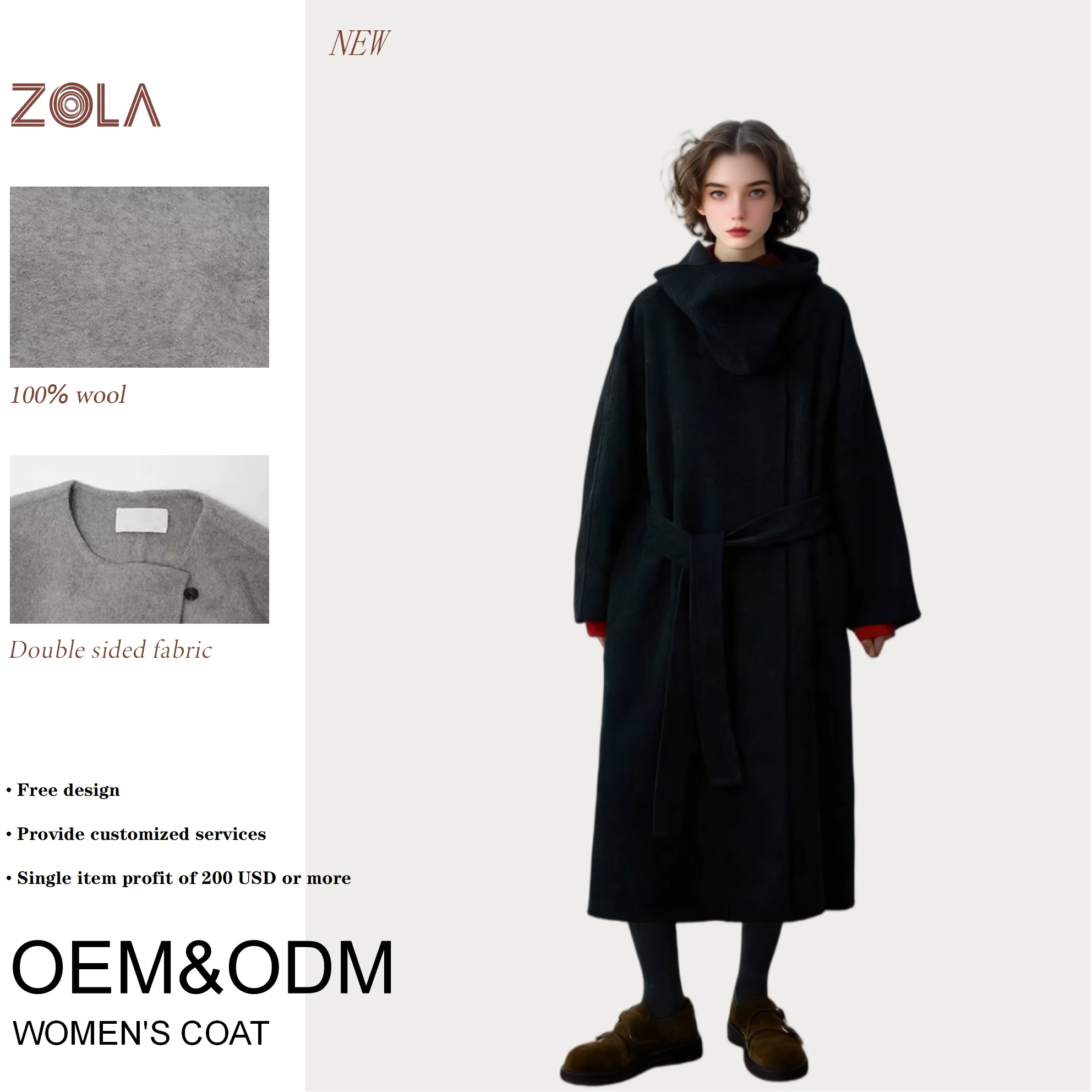 Luxe Buttery-Soft Oversize Cowl Collar Coat 100% Wool Double Sided Self-Belt Office-Ready Custom
