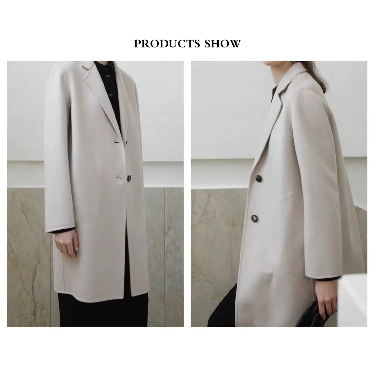 Zola Handmade High-End Eco-Friendly Women's 100% Woolen Casual Long Single-Breasted Winter Coat Notched Collar Button Decoration