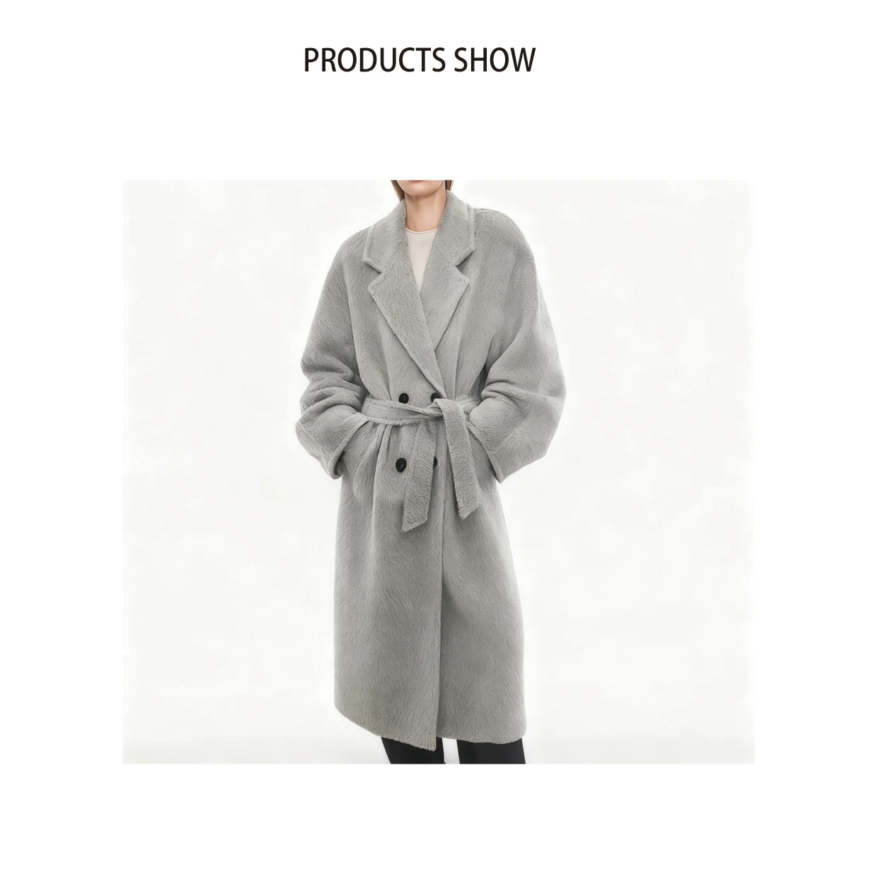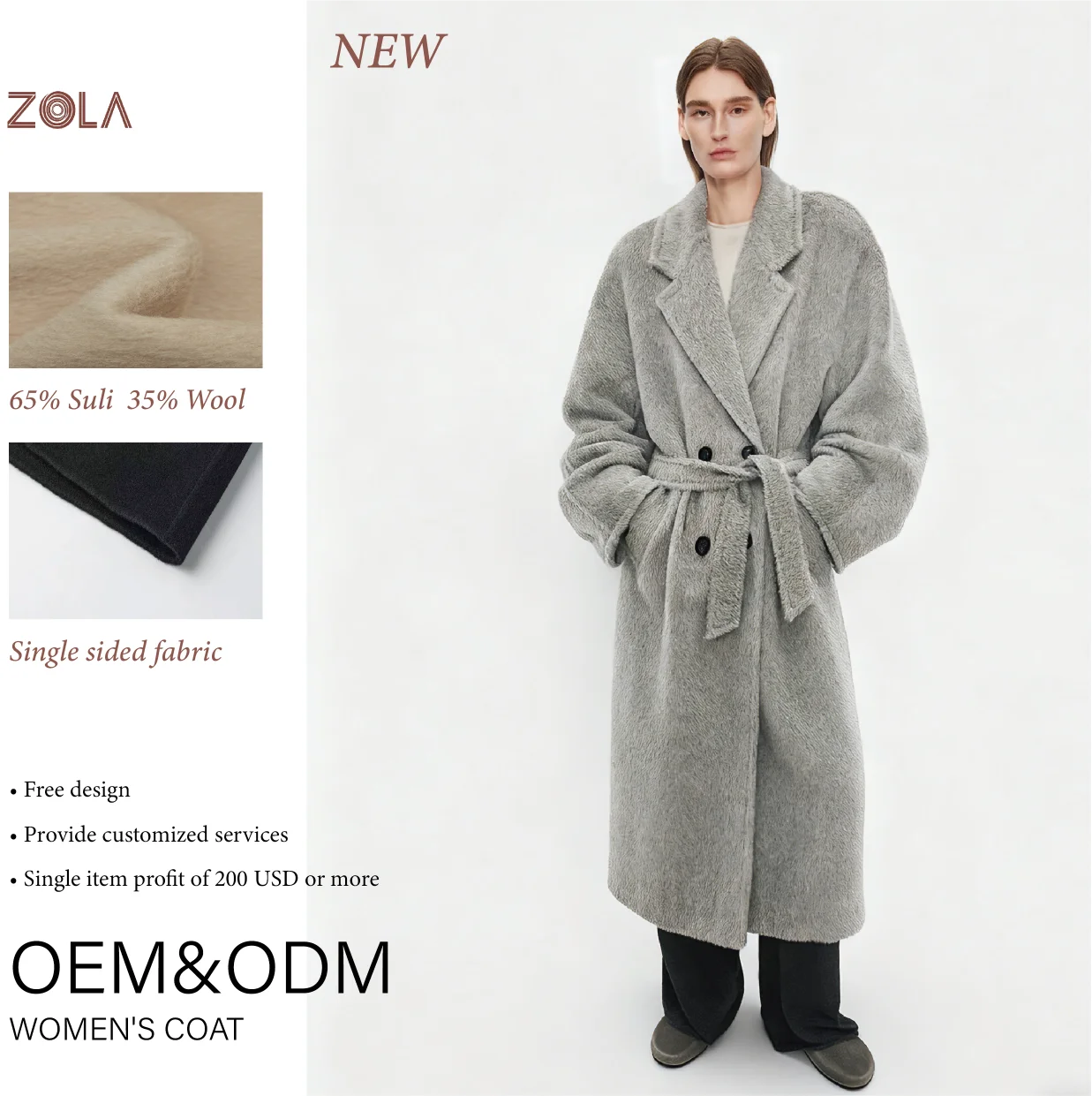 Women's Suli Classic Woolen Long Coat with Double-Breasted Buttons Handmade Soft Warm Winter Clothing and Polyester Lining