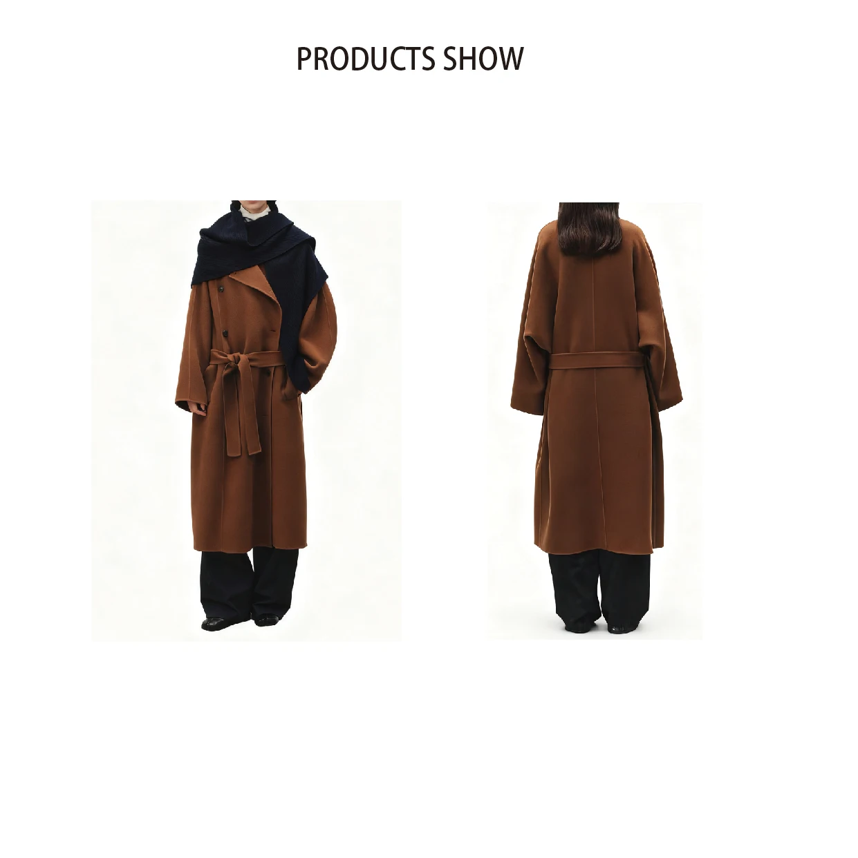 Customized Color Handmade Button Open Front Long Casual Wool Coat for Women Winter
