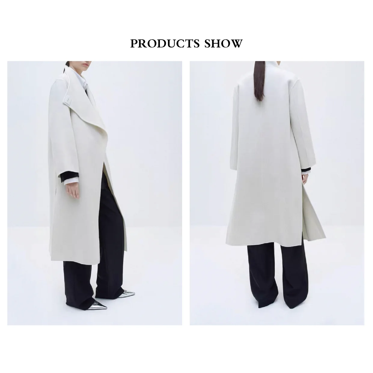 High-End Handmade Eco-Friendly Casual White 100% Wool Soft Coat Winter Long Outerwear Covered Button Closure Scarf Breathable