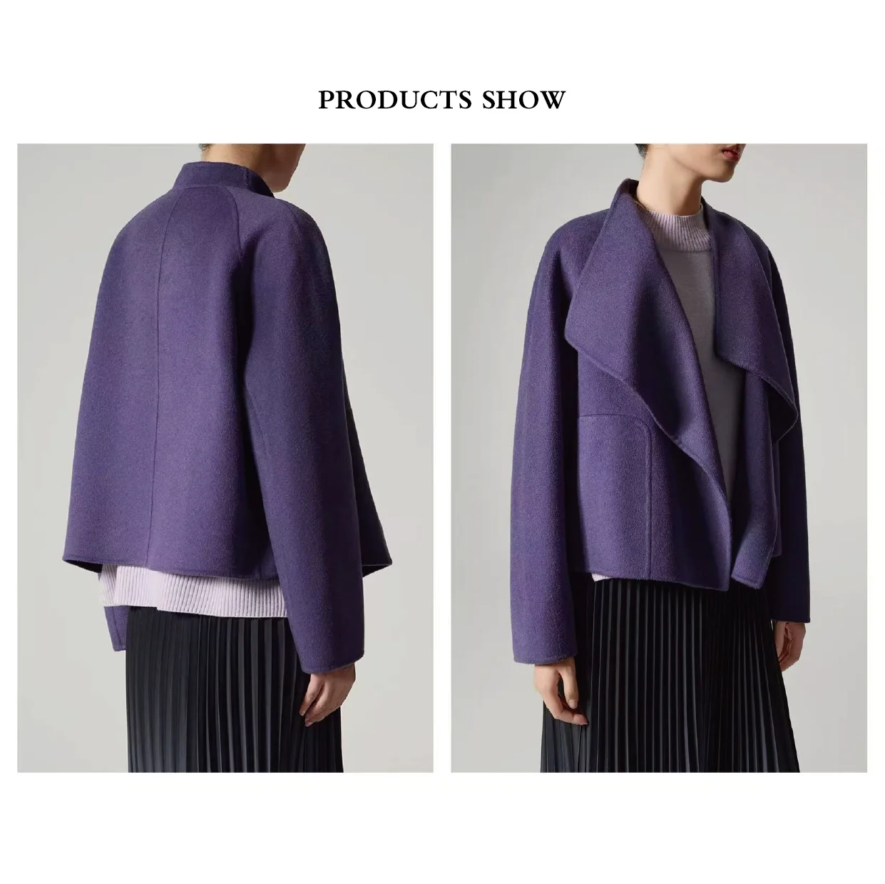 Nice Collar Short Open Front Eco-Friendly Double Sided Winter Loose Fit Casual Wool Coat for Ladies