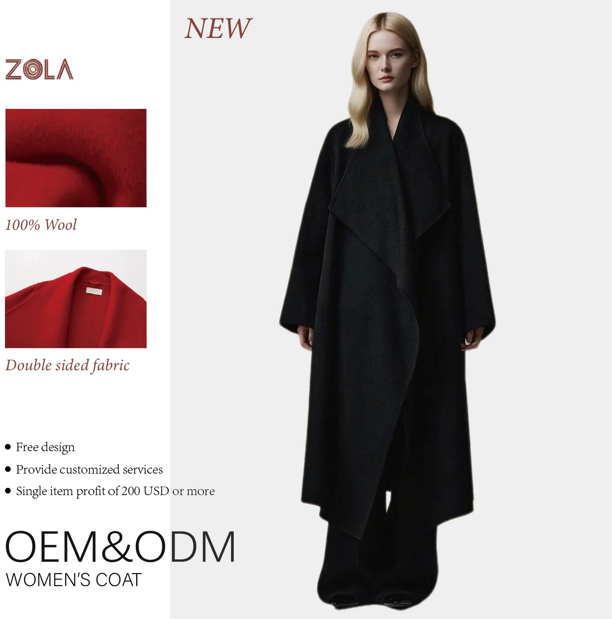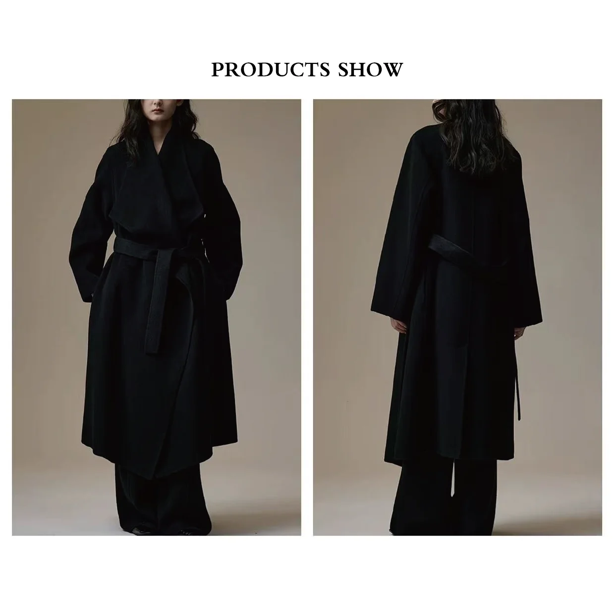 Luxury Double Sided Wool Coat for Women Casual Long Outerwear Belt Handmade Eco-Friendly Loose Fit Winter Keep Warm