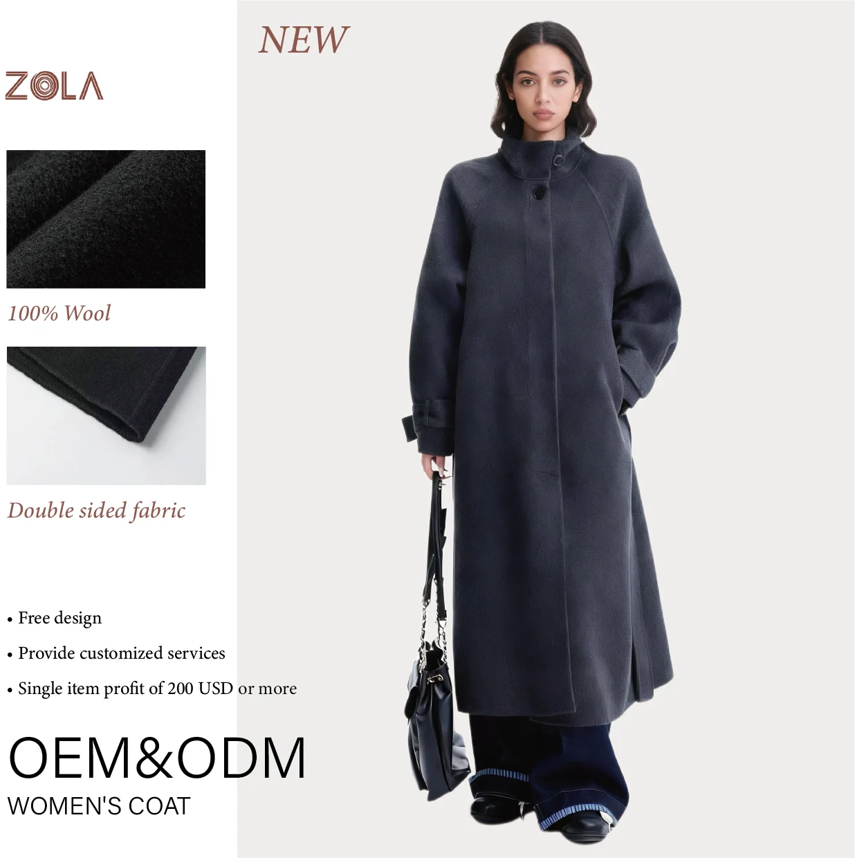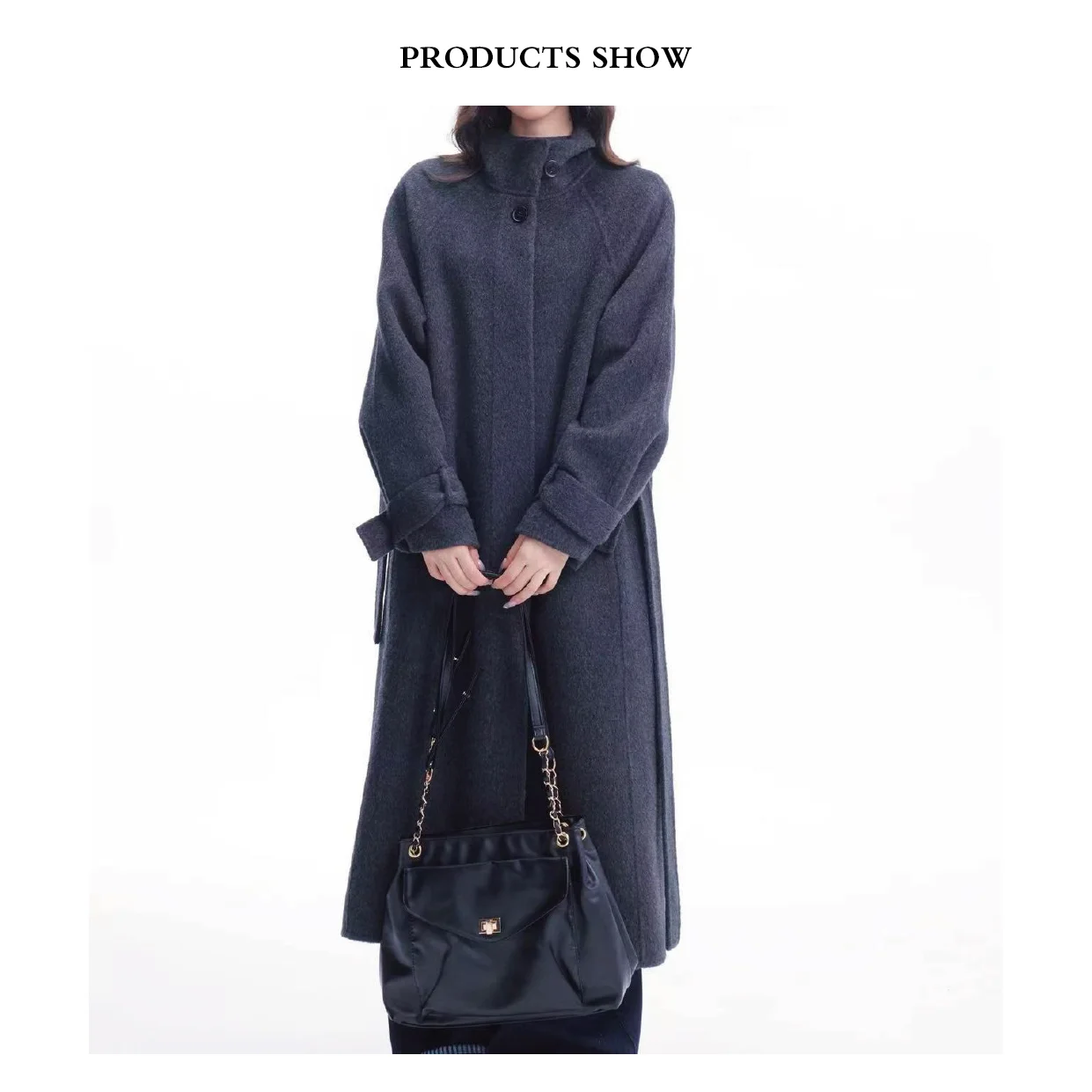 Luxury Eco-Friendly Handmade Double Sided Long Woolen Coat for Women Casual Winter Keep Warm with Button Belt Closure