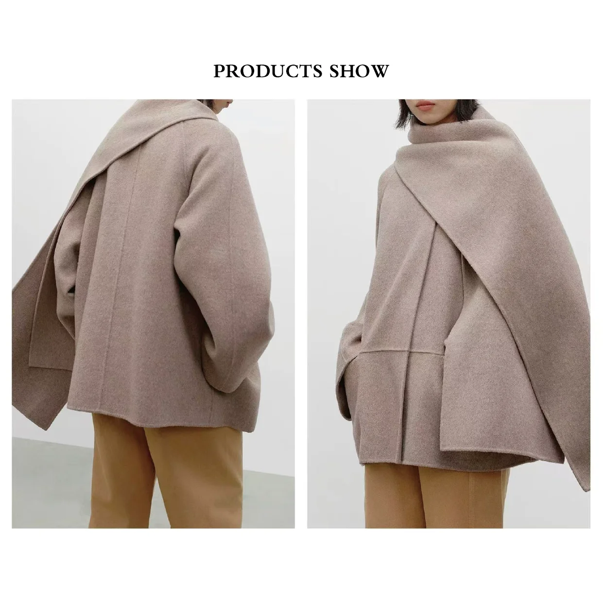 Hot Sale Women's Winter Eco-Friendly 100% Woolen Coat Handmade Casual Short Design Button Decoration Includes Scarf for Warmth