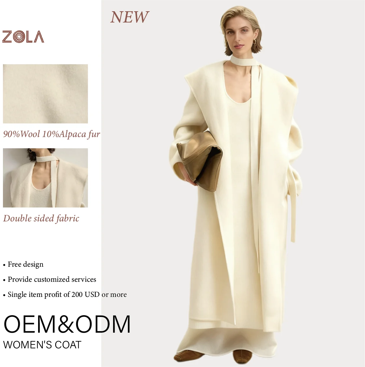 Vintage Design Single Breasted Alpaca Woolen Coat Loose Fit Eco-Friendly Handmade Popular Long Outerwear for Ladies Casual