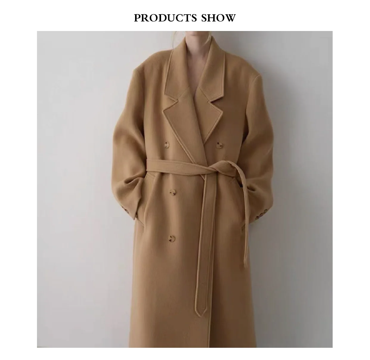 25-year-old Winter New Premium Handmade Casual Relaxed Strap Warm Wool Cashmere Blend Double-Sided Long Ladies' Coat Button