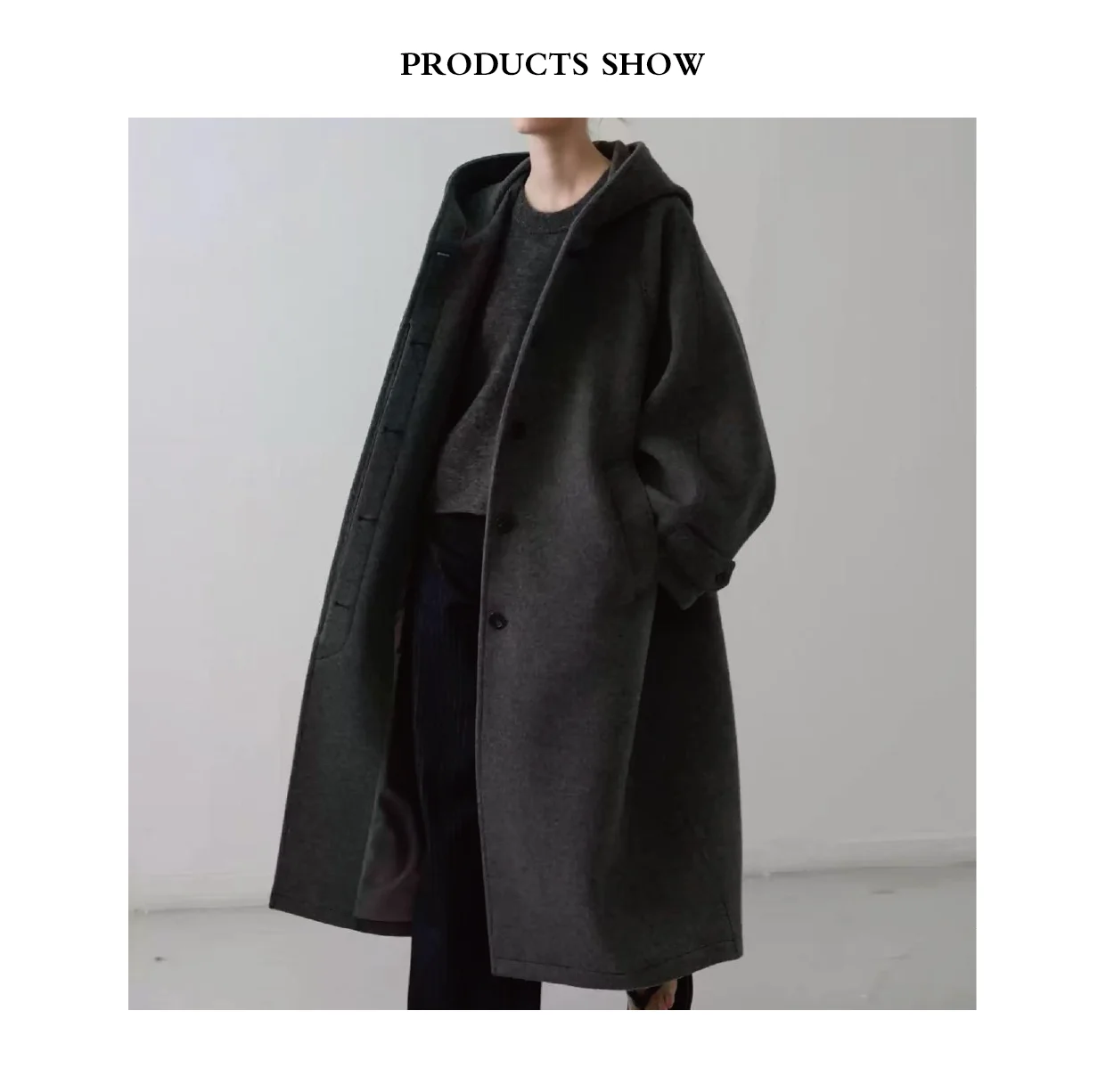 25-year-old New Winter Casual Minimalist Relaxed Warm Wool Double-sided Grey Long Button Closure Ladies' Coat