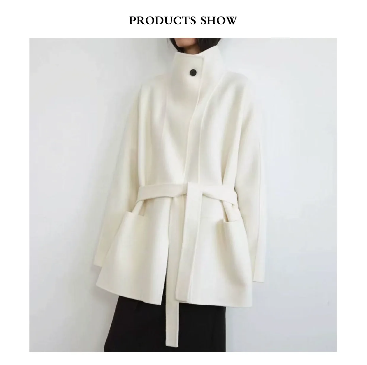25-year-old Winter New 100% Wool Double-sided Stand Collar Ladies' Coat with Belt Closure Handmade Soft & Keep Warm
