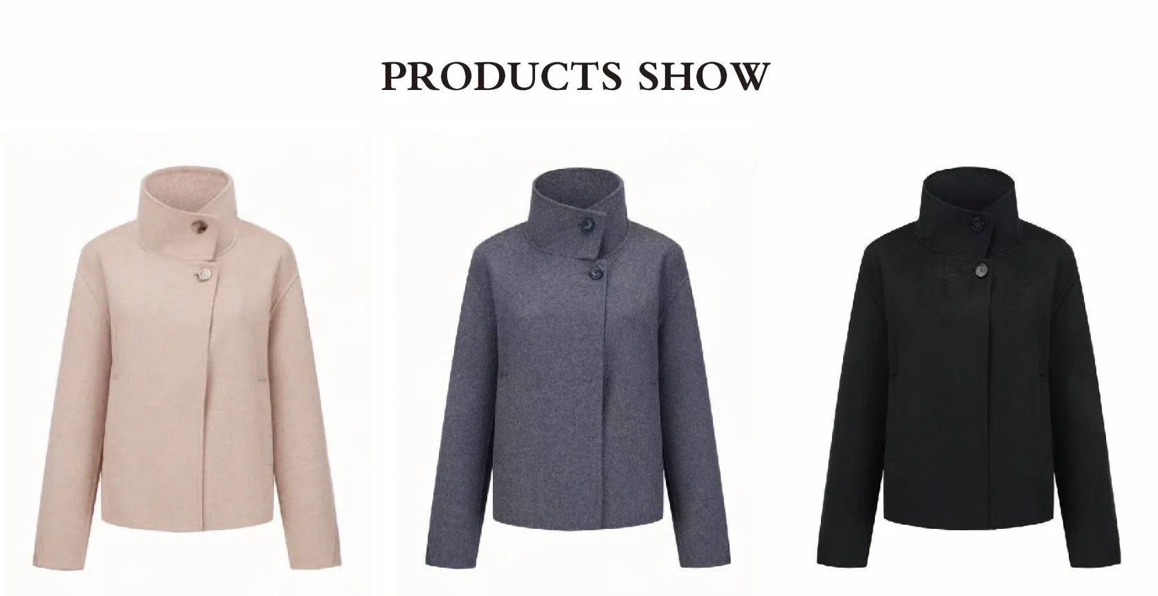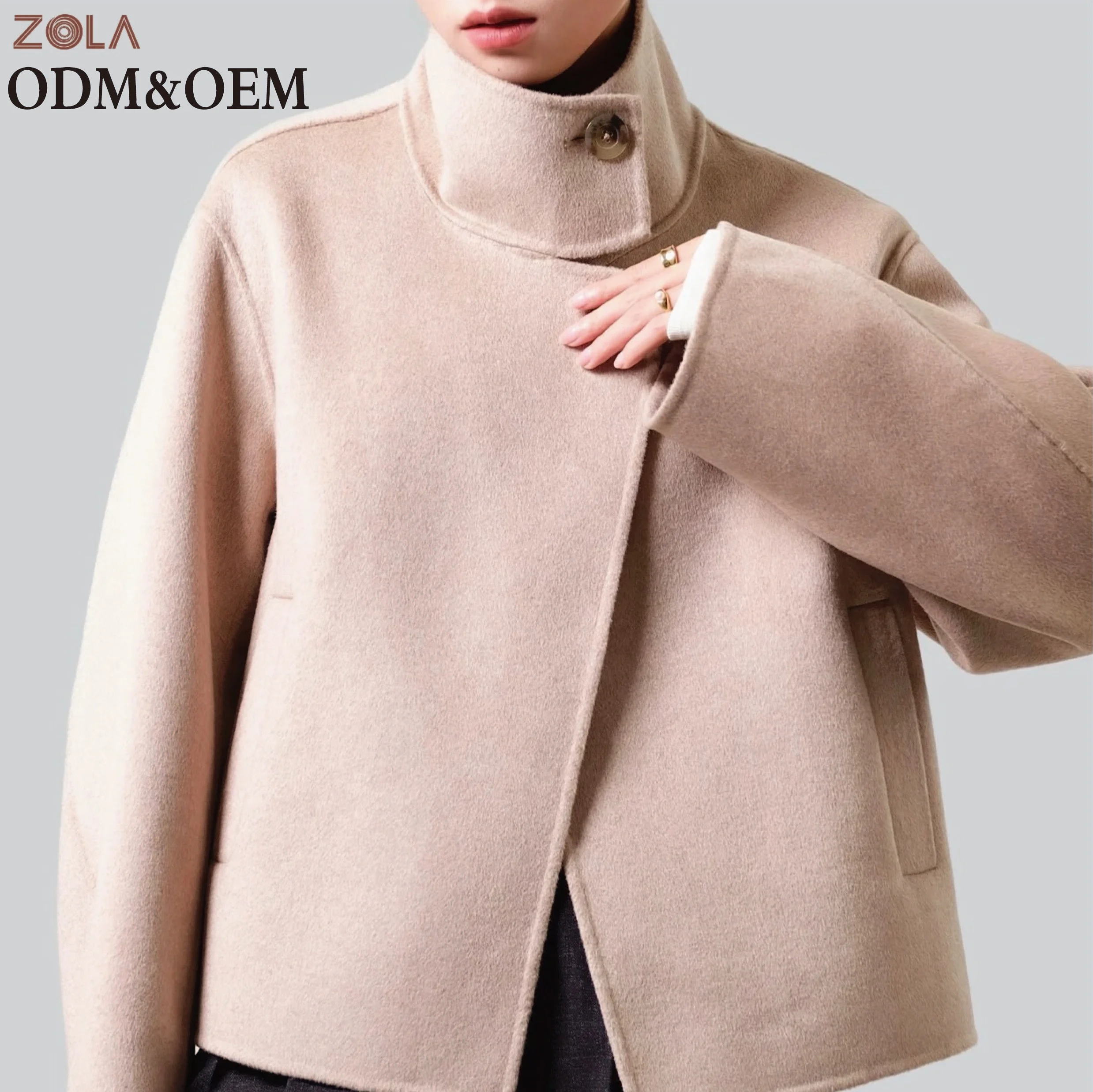 Wholesale New Fashion Color Women's Casual Short Warm Wool Coat Turtle Neck with Button