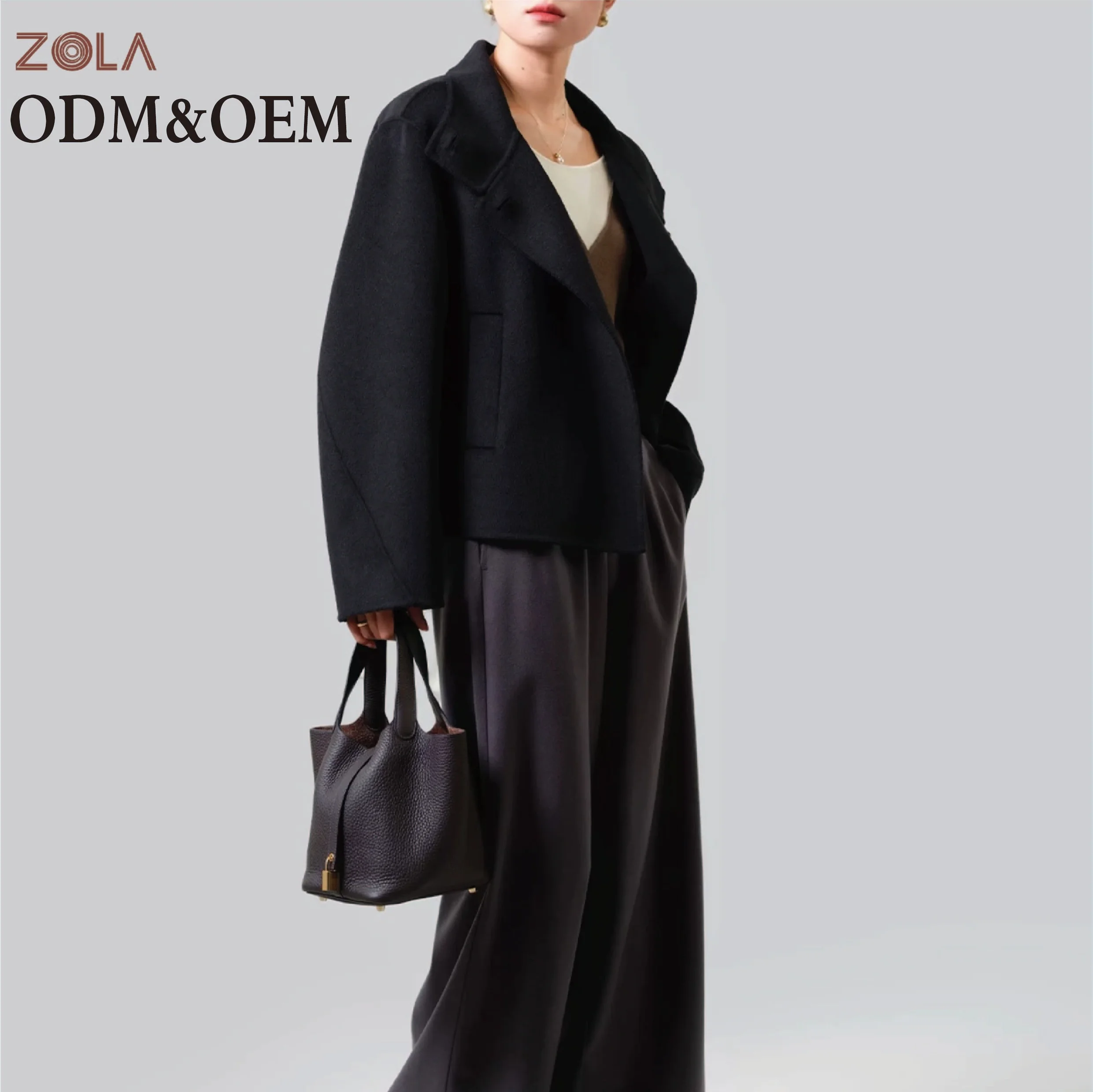 Classic Color Customized Design Turtle Neck Women's Short Casual Wool Coat for Winter