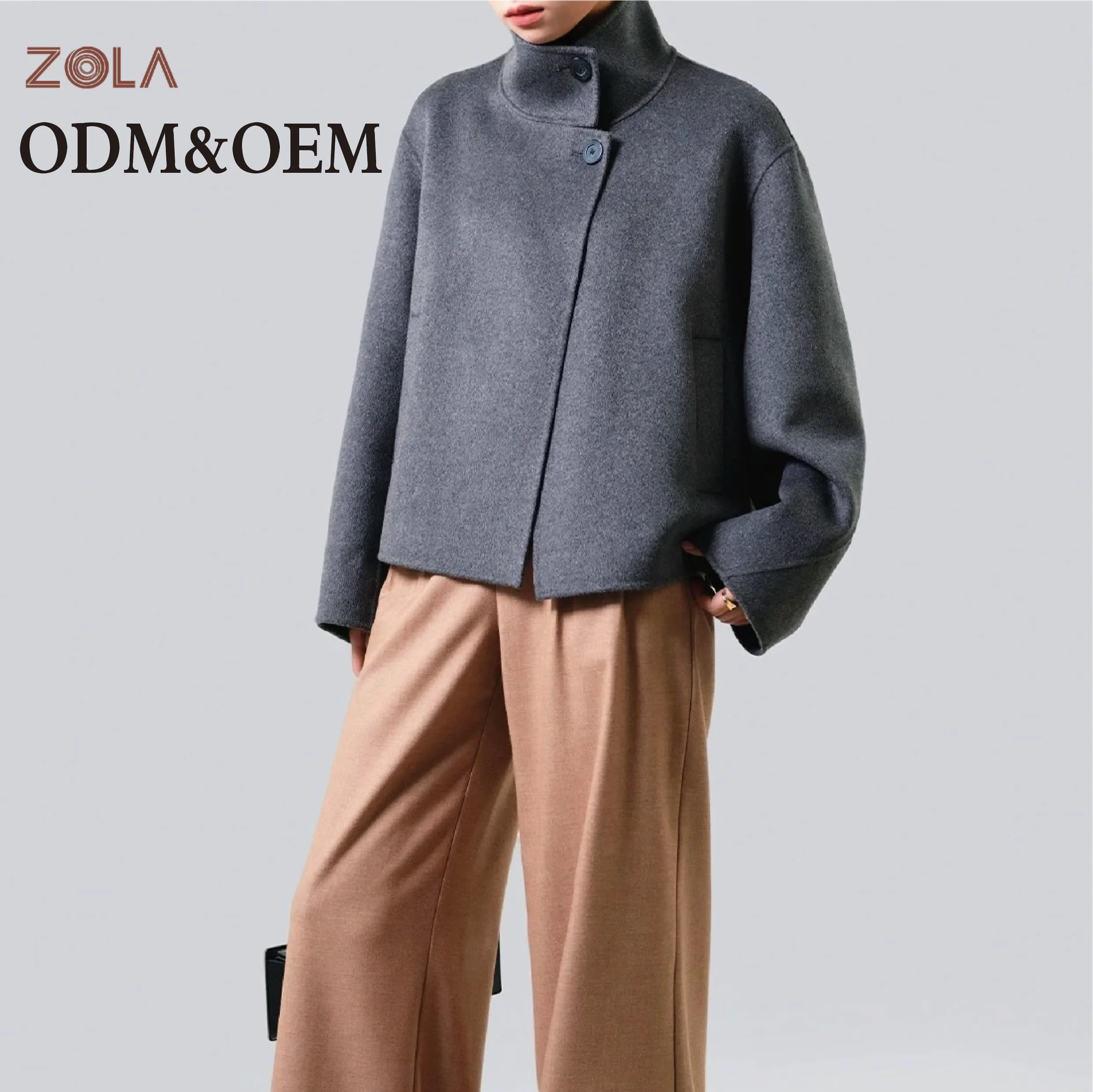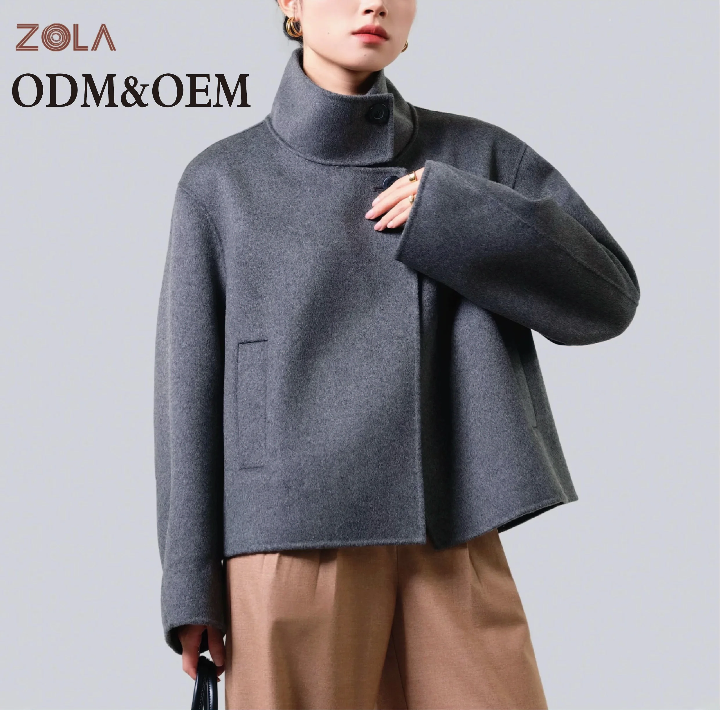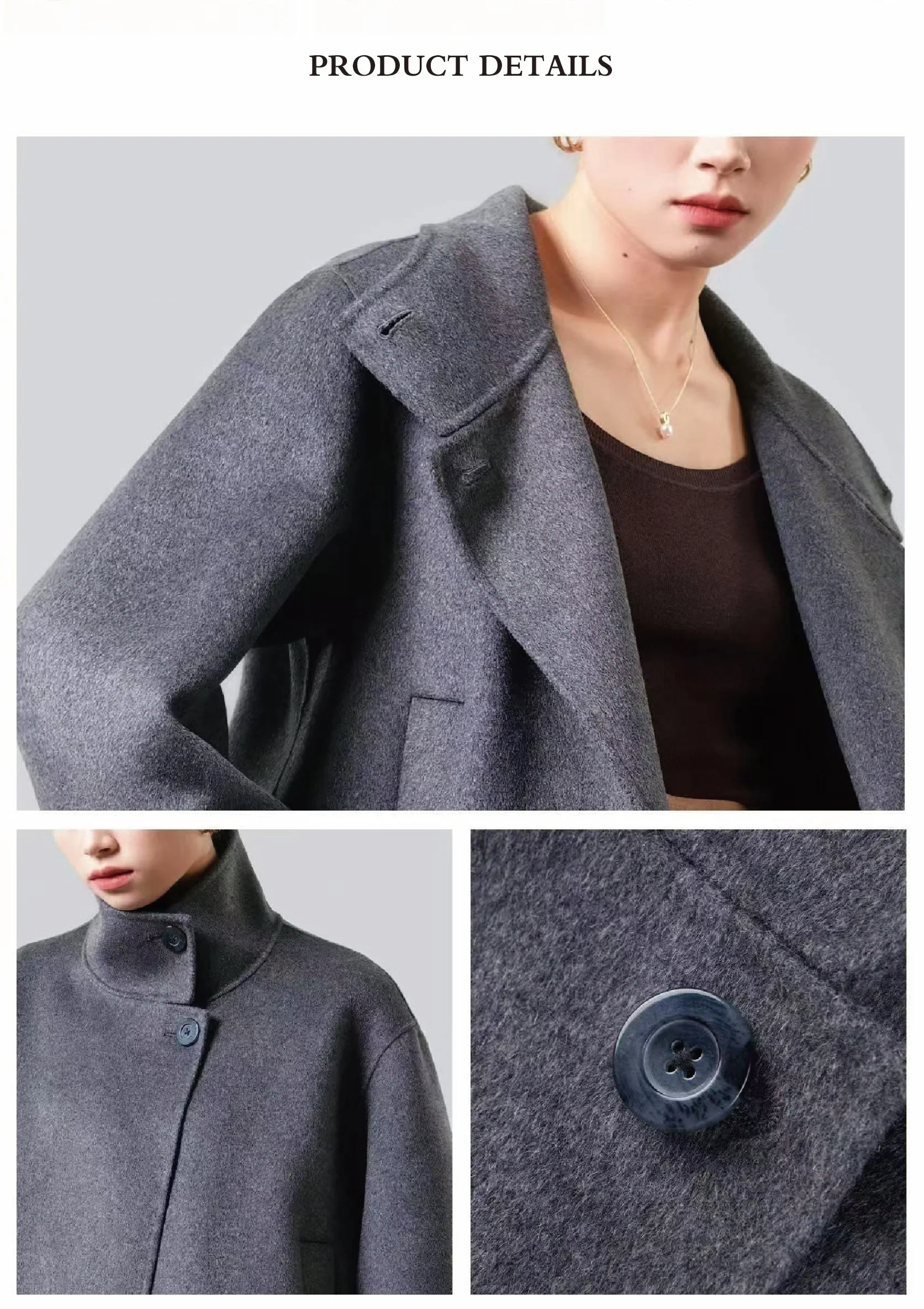 Women's Winter Wool Coat Hot Sale Casual Short Double Sided with Turtle Neck Different Colors Plain Dyed Button Decoration