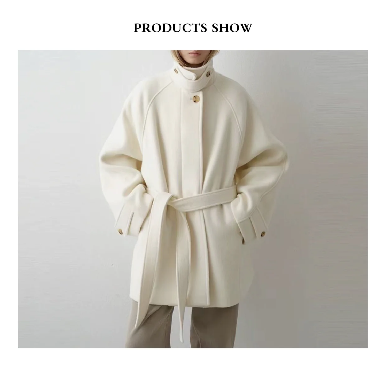 Ladies Wool and Cashmere Blended Strap Coat Women's Premium Outerwear