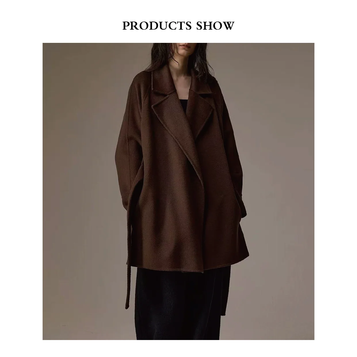 Handmade 100% Woolen Coat Regular Length Winter Casual Outerwear with Double Sided Warmth and Belt