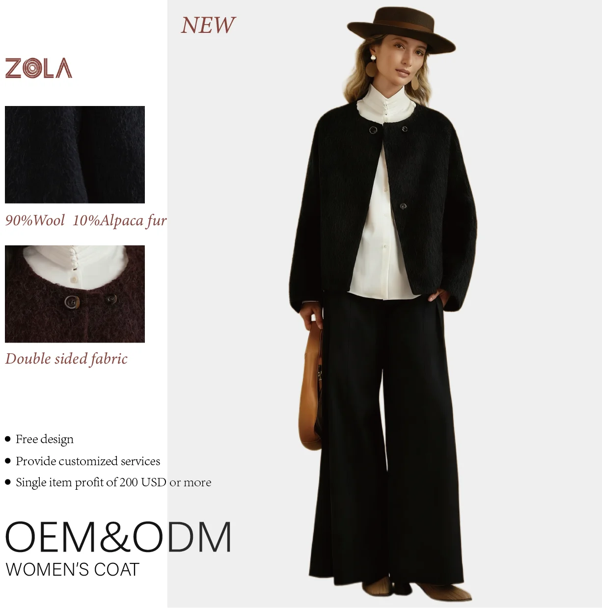 Hot Sale Women's Winter Coat Handmade Casual Double-Sided Wool Alpaca Eco-Friendly Keep Warm Outerwear Button Decoration New