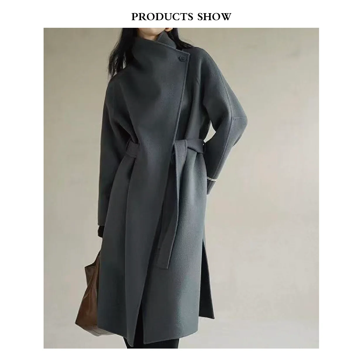 Women's Casual Winter Long Coat in Solid Color Double Sided with Single Button Belt Closure Made of Woolen Fabric