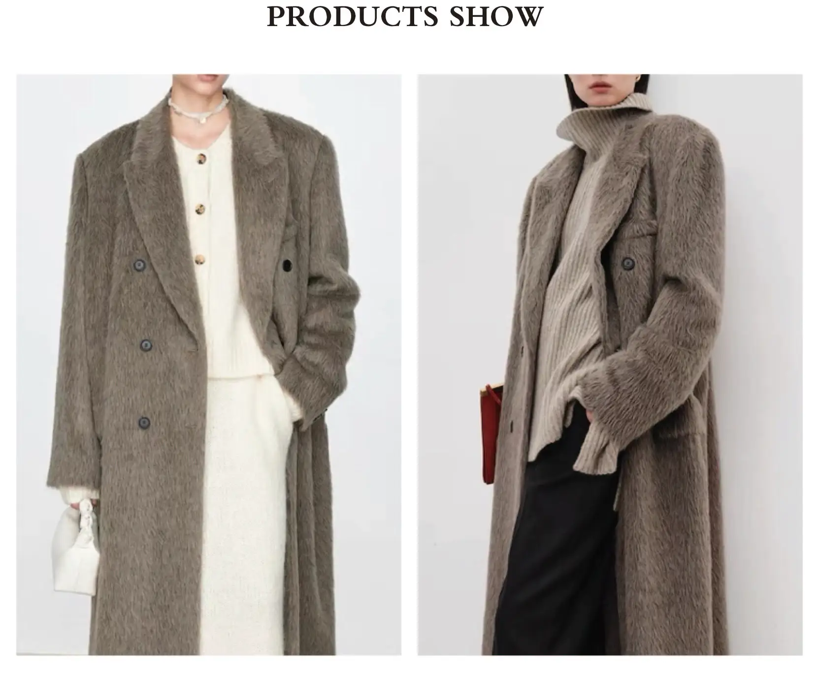 Women's Suri Classic Long Winter Coat with Double-Breasted Buttons Polyester Lining
