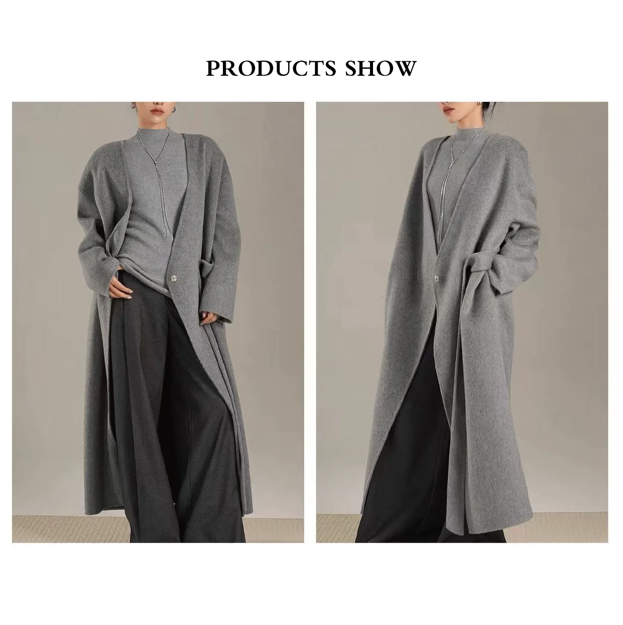 Button Decorated Long Breathable Alpaca Fur Coat with Belt Closure Outerwear Coat for Women