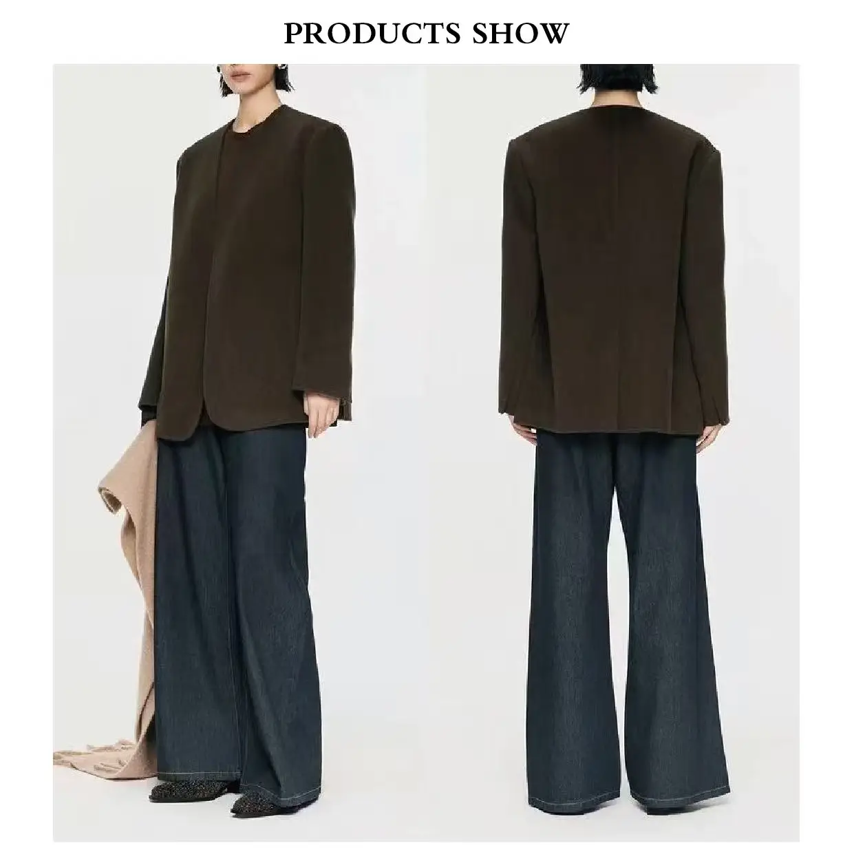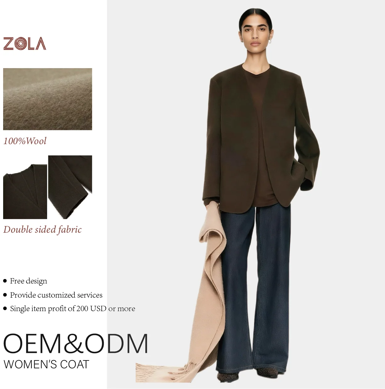 Customized Handmade Open Front Lady's Winter Double-Sided Casual Wool Coat Short Fashion Style