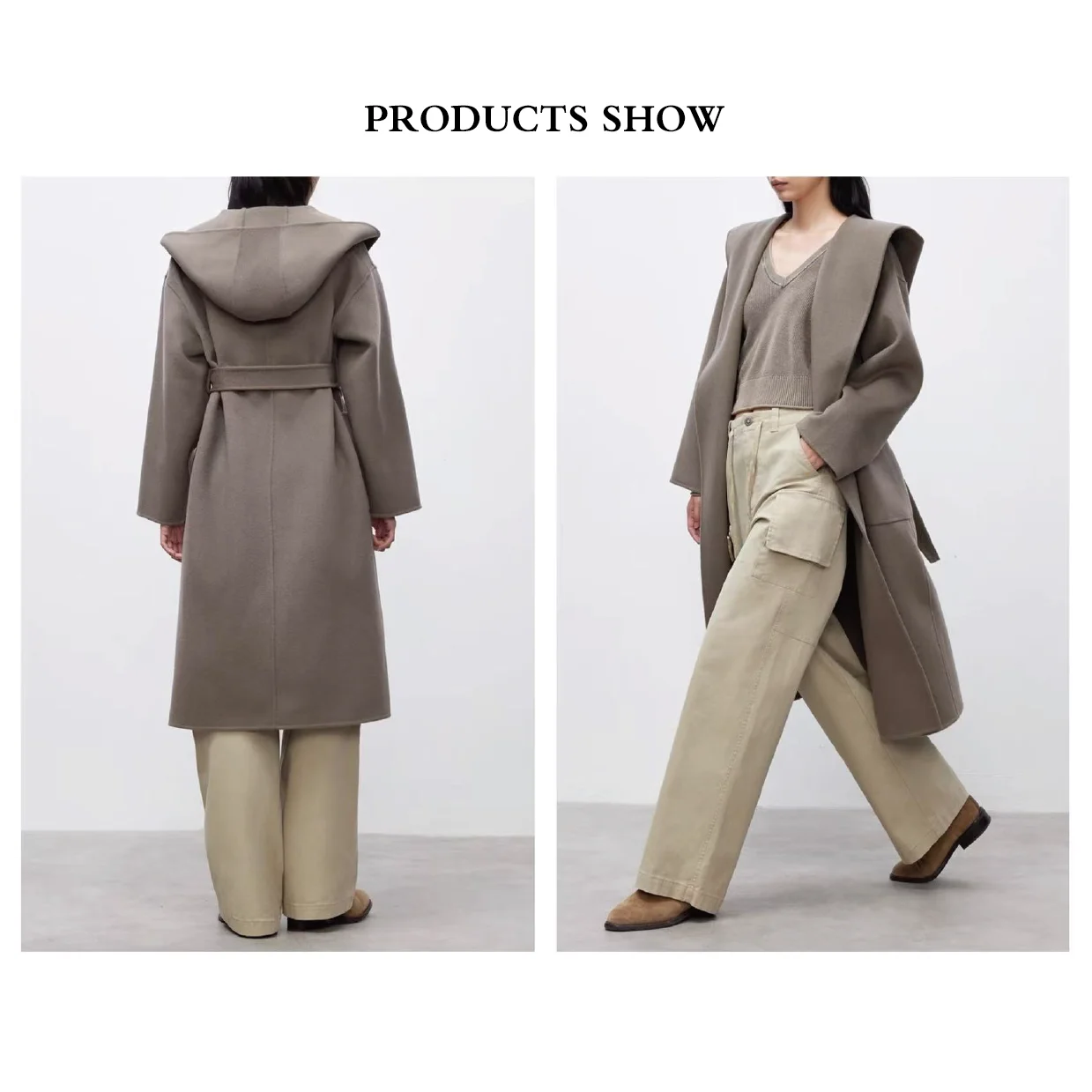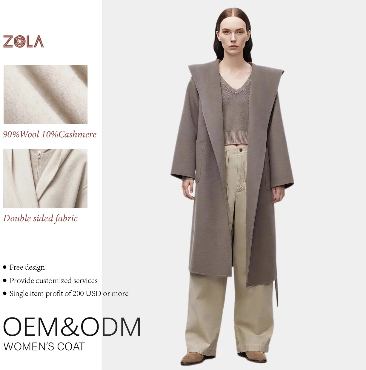 Customized Women's Casual Cashmere Coat with Long Hood Autumn Winter Keep Warm Pocket for the Season
