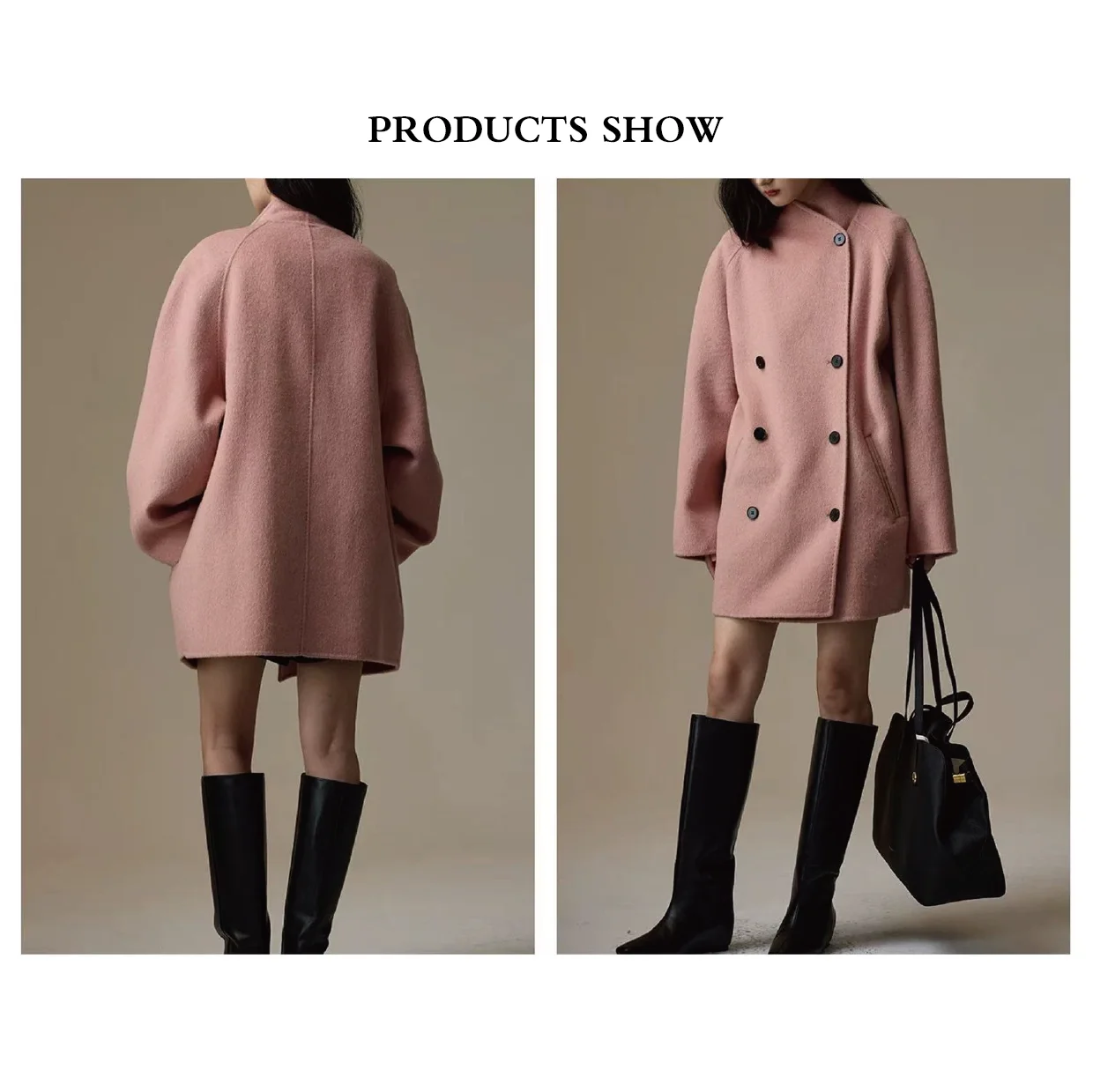 Customized Ladies' Woolen Alpaca Fur Casual Coat Solid Color Double Breasted Button Closure Winter Keep Warm