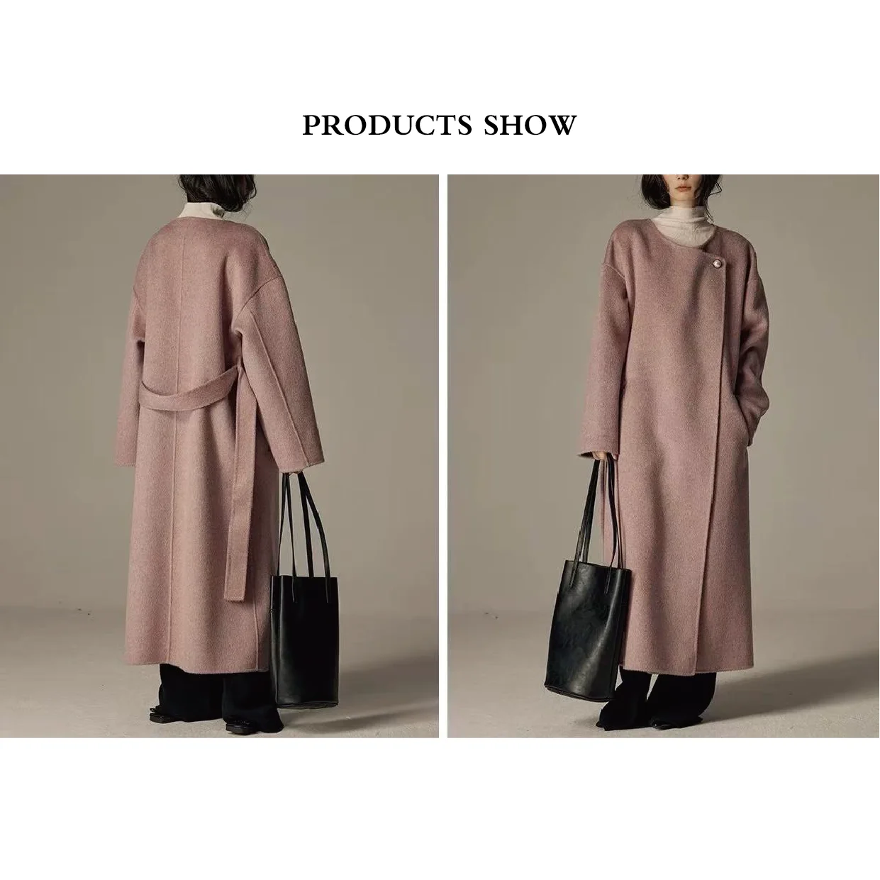 ODM Women's Handmade 100% Wool Eco-Friendly Long Winter Casual Woolen Coat with Single Button Closure and Belt Keeps Warm