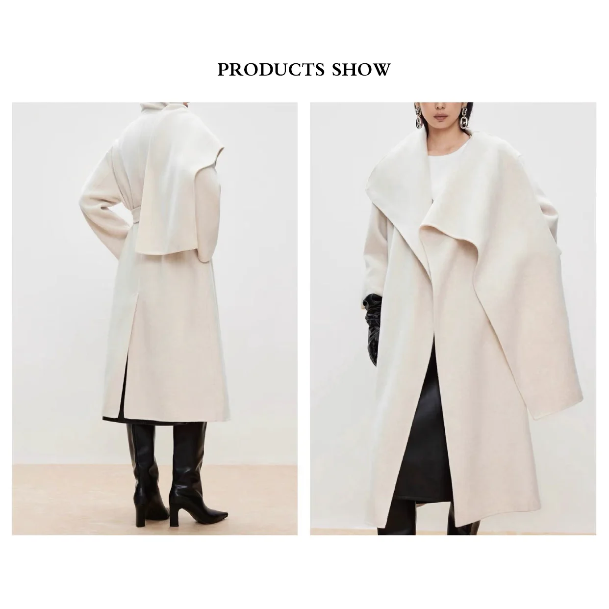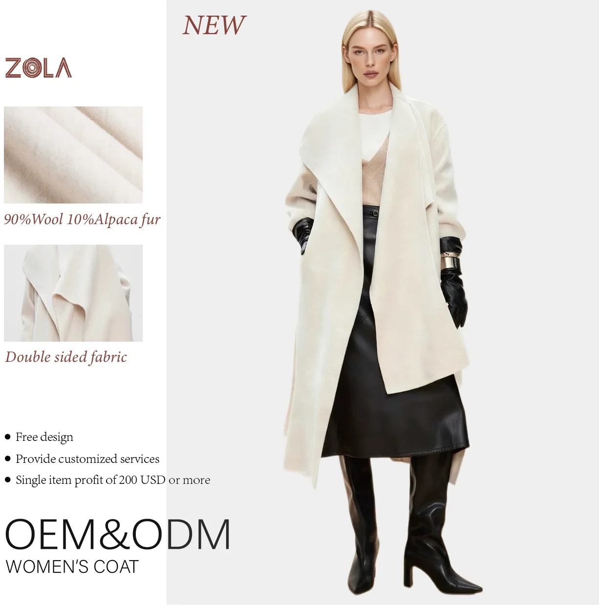 Luxury Design Solid Color Double Sided Alpaca Fur Woolen Handmade Belt Button Winter Long Casual Coat Keep Warm Eco-Friendly