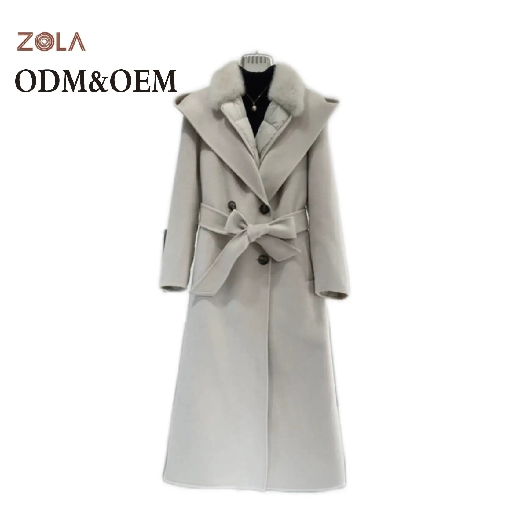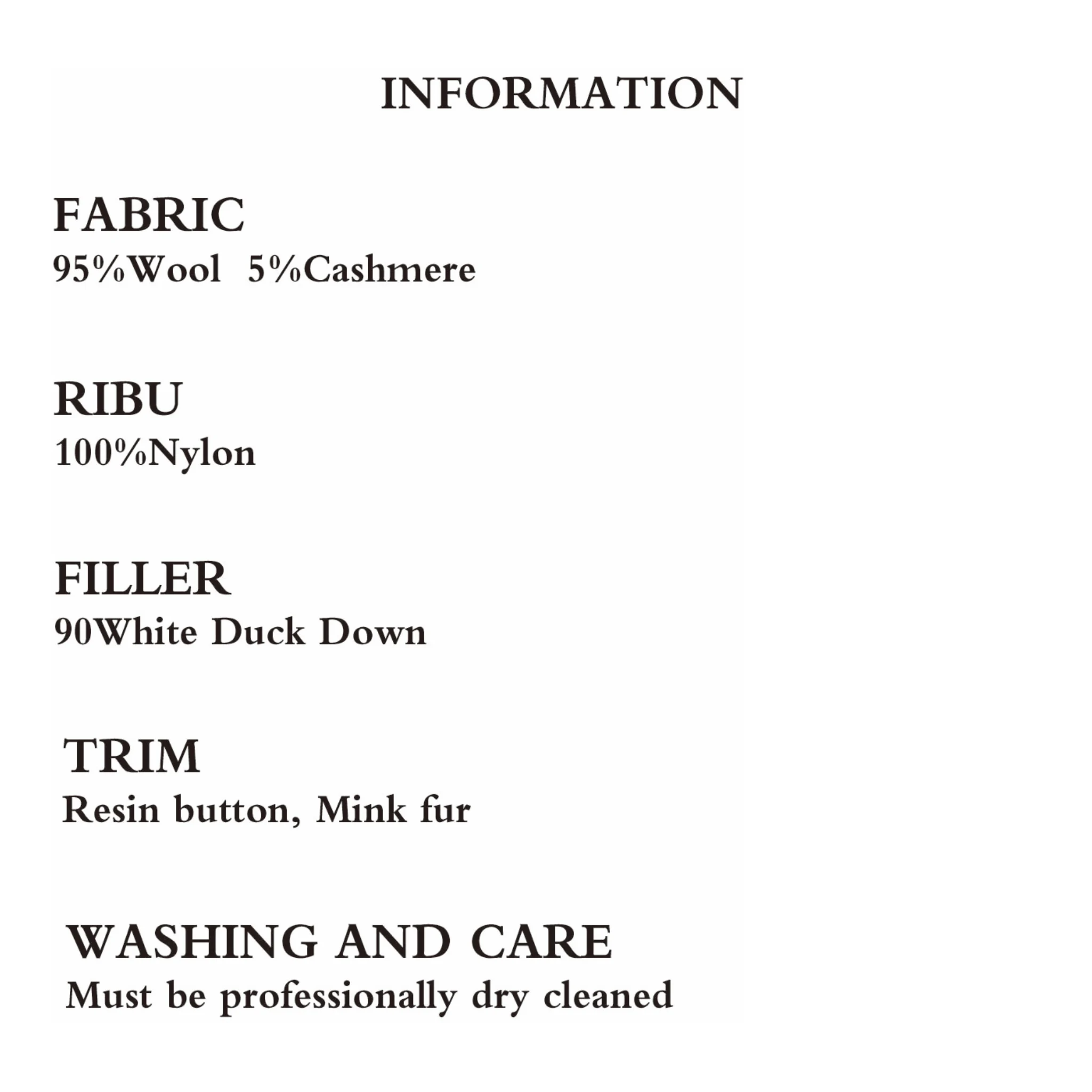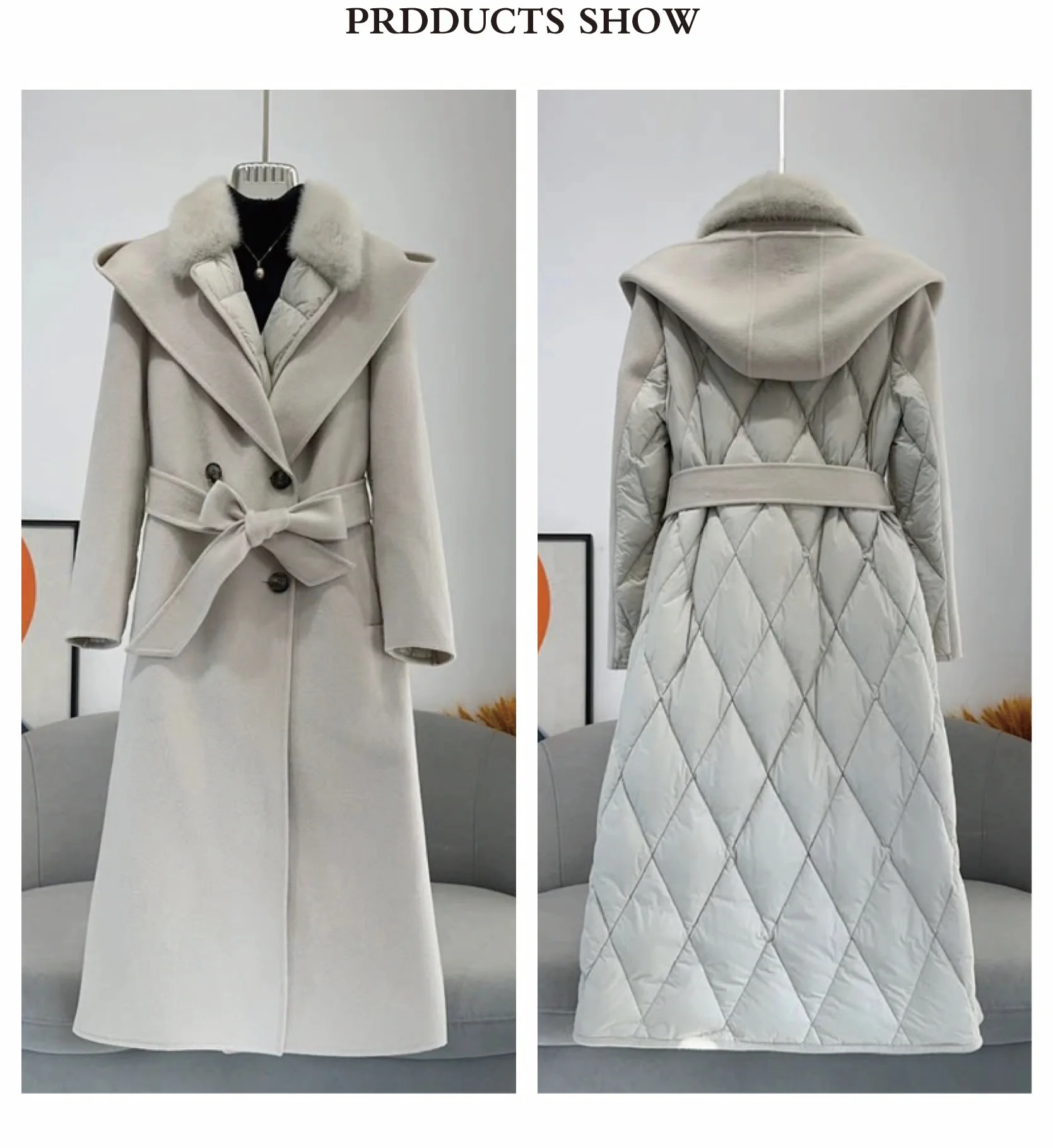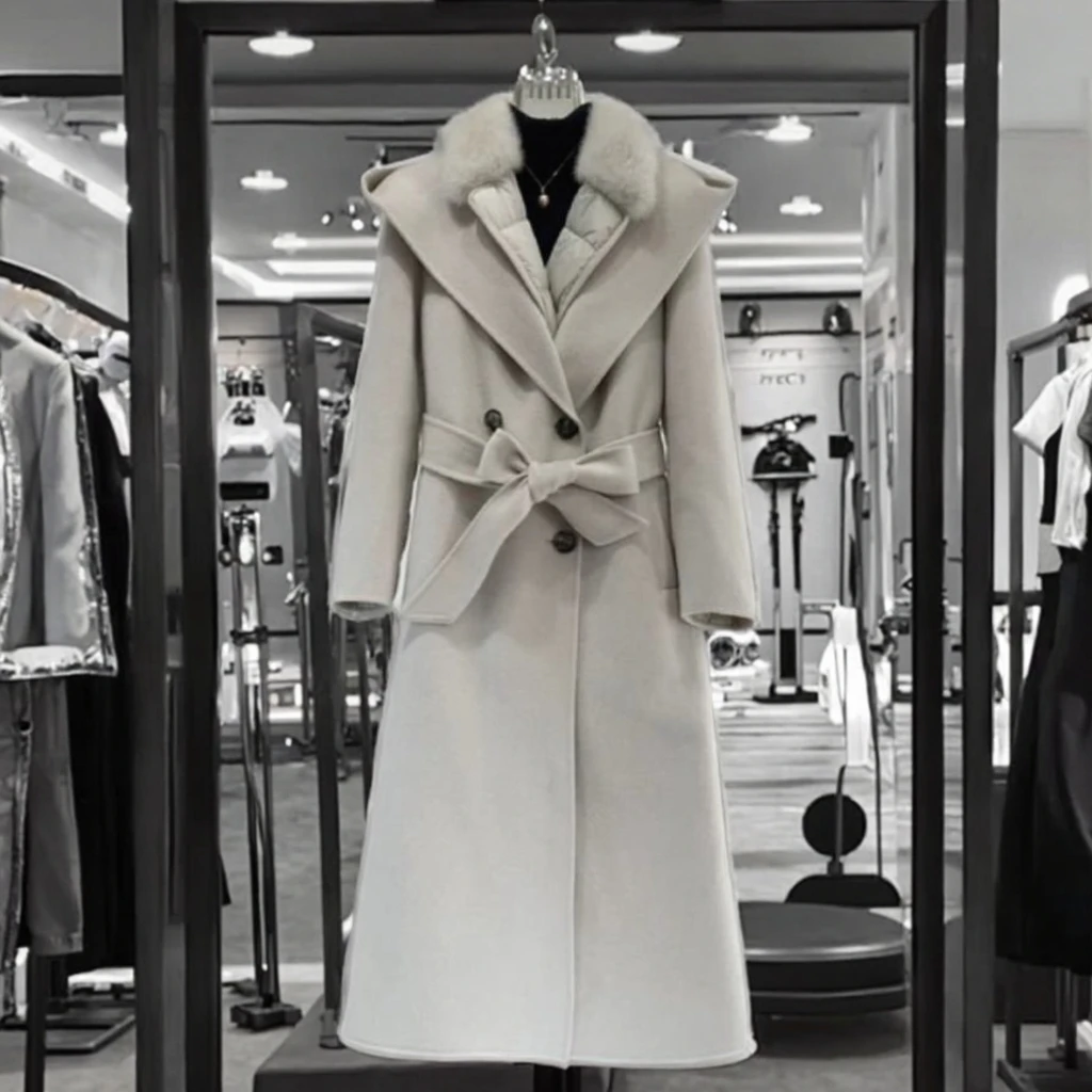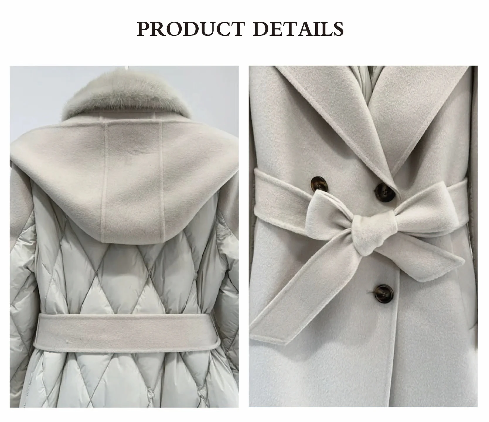 Women's Cashmere Down Jacket Double-Sided Tweed with White Duck Double Breasted Closure Nylon Lining for Winter