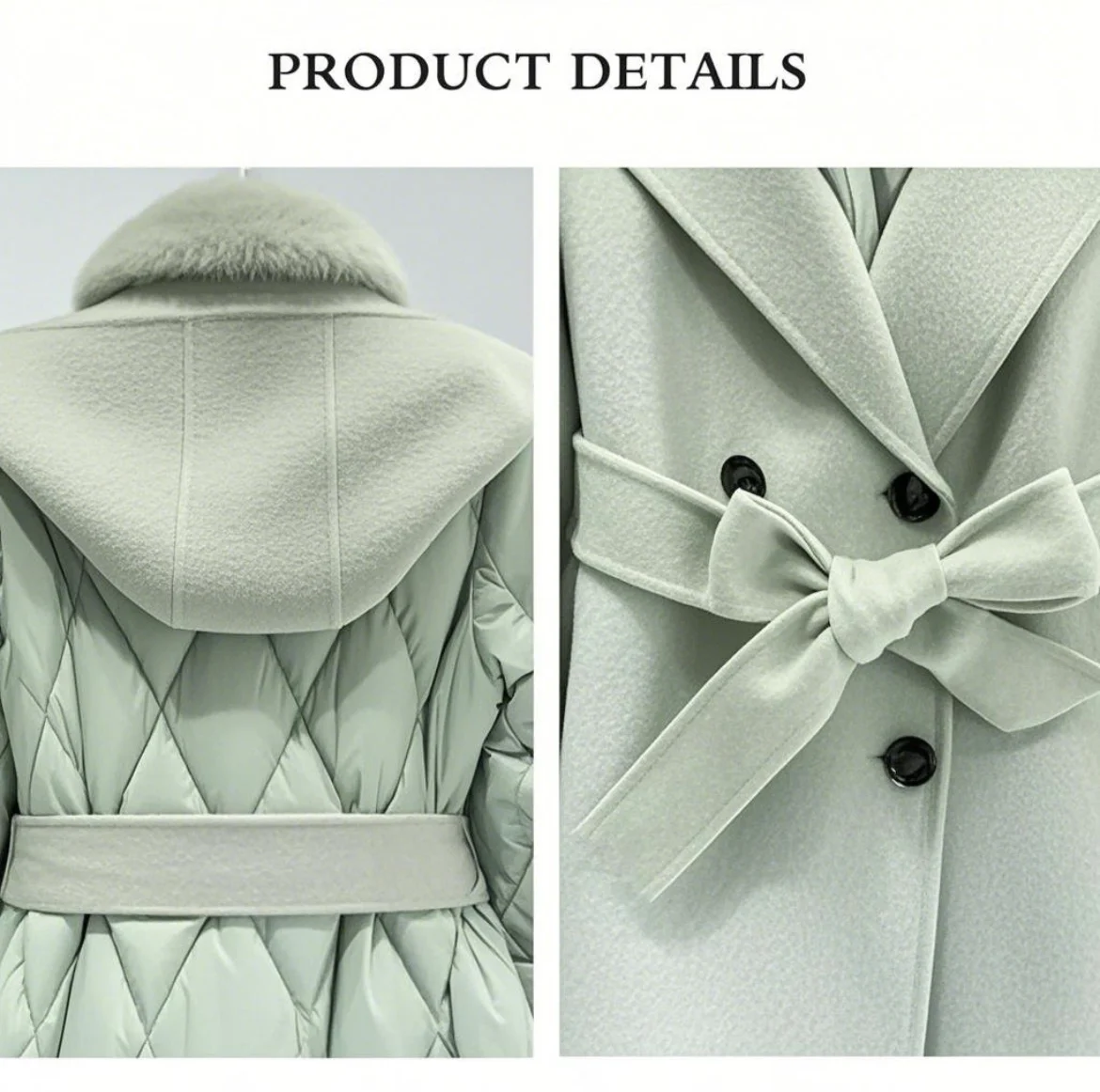 Women's Cozy Mid-to-Long Cashmere Down Jacket Double-Sided Tweed with White Duck Double Breasted Closure Nylon Lining for Winter