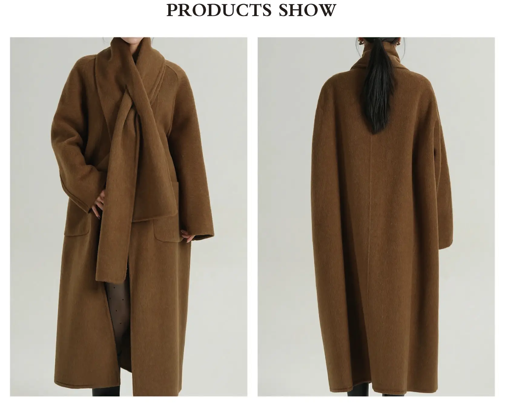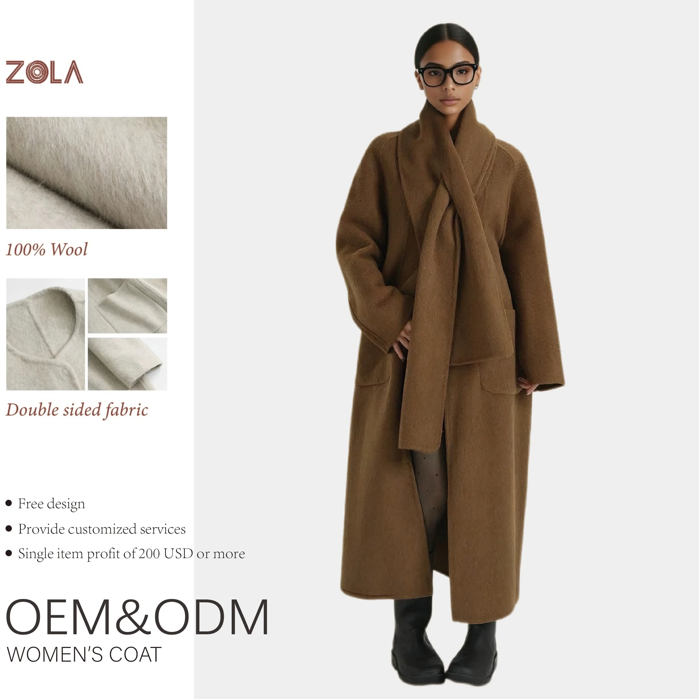 Eco-Friendly Women's Long Winter Outerwear Warm Wool Coat with Pocket Decorated